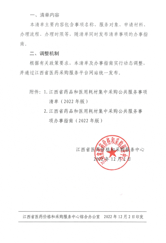 附件:1.江西省药品和医用耗材集中采购公共服务事项清单(2022年版)