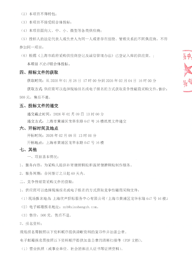 【上海中医药大学附属曙光医院】上海中医药大学附属曙光医院补肾健脾颗粒和温肾健脾颗粒制作项目竞争性磋商公告(第三次)