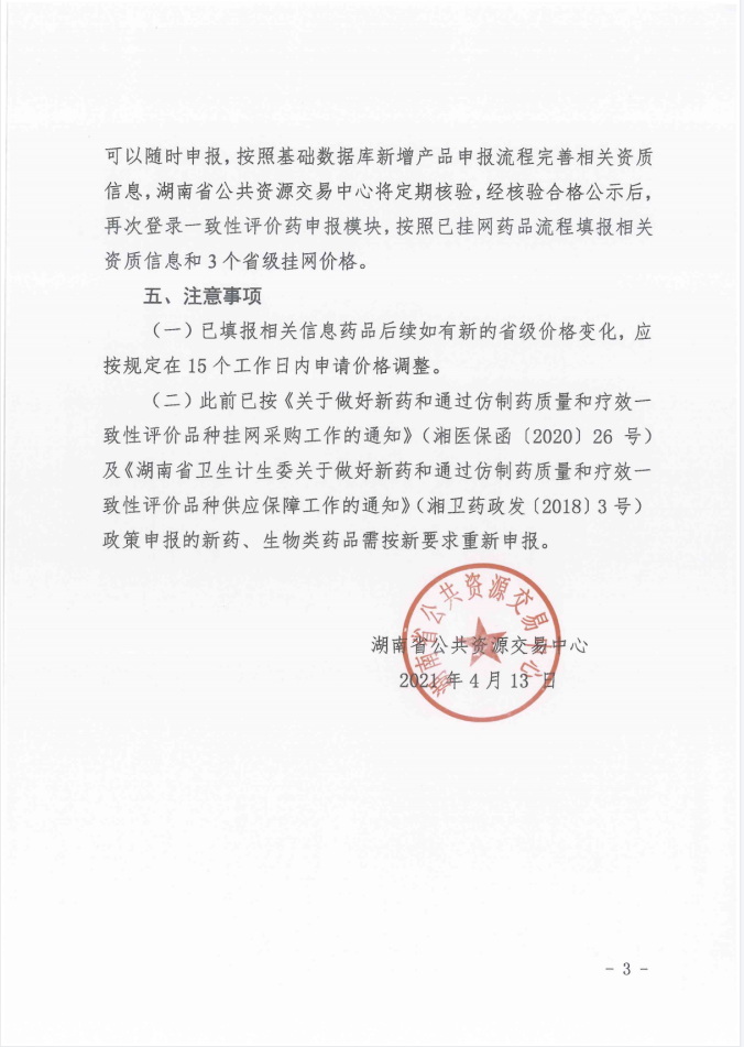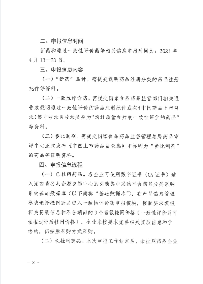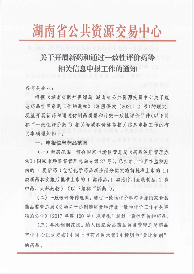 【湖南】2021年湖南省关于开展新药和通过一致性评价药等相关信息申报工作的通知