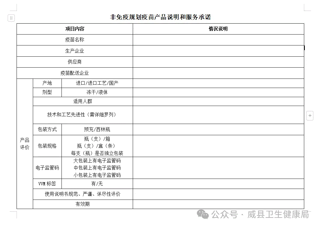 1.威县非免疫规划疫苗产品说明和服务承诺;