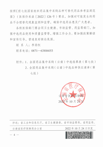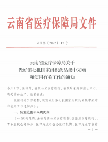 【云南】云南省医疗保障局关于做好第七批国家组织药品集中采购和使用有关工作的通知