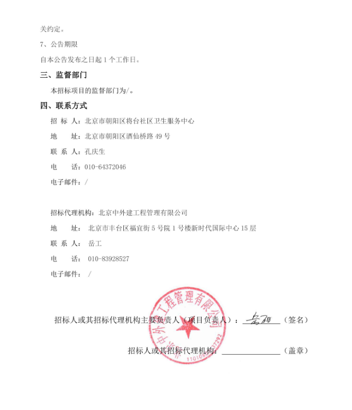 所属项目:北京市朝阳区将台社区卫生服务中心
