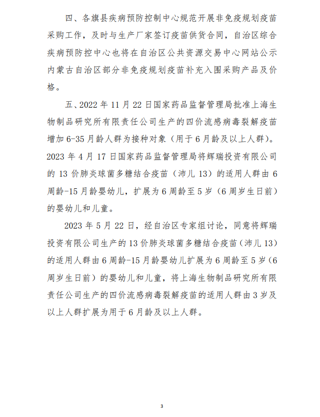 2023年5月22日,根据内蒙古自治区卫生健康委员会《内蒙古自治区非免疫规划疫苗招标采购实施方案》(内卫