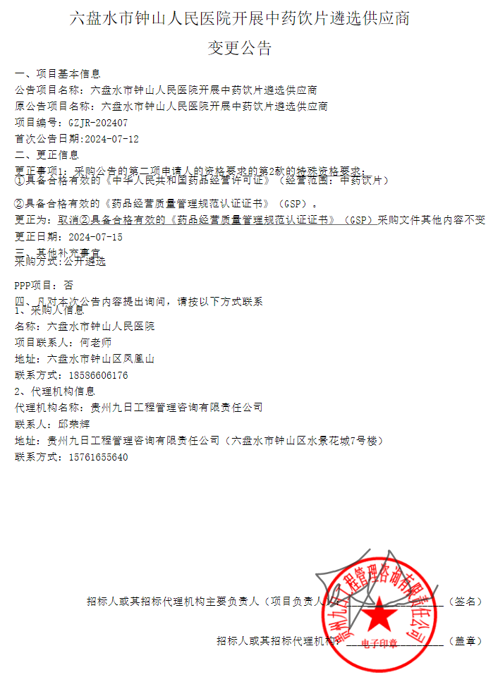【六盘水市钟山人民医院】贵州省六盘水市钟山人民医院开展中药饮片遴选供应商变更公告