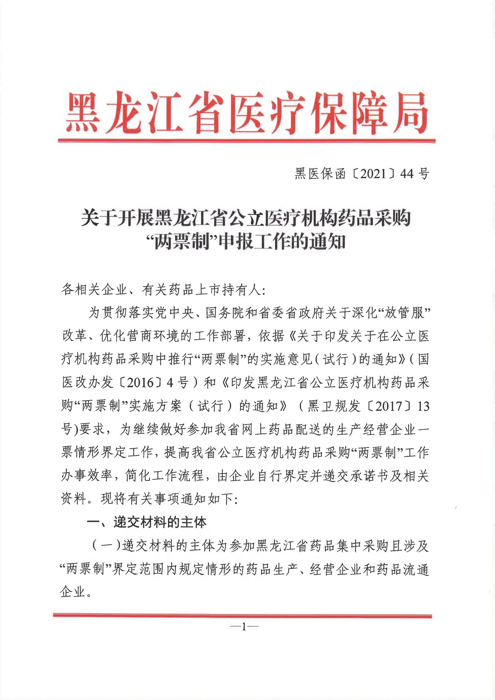 【黑龙江】关于开展黑龙江省公立医疗机构药品采购“两票制”申报工作的通知