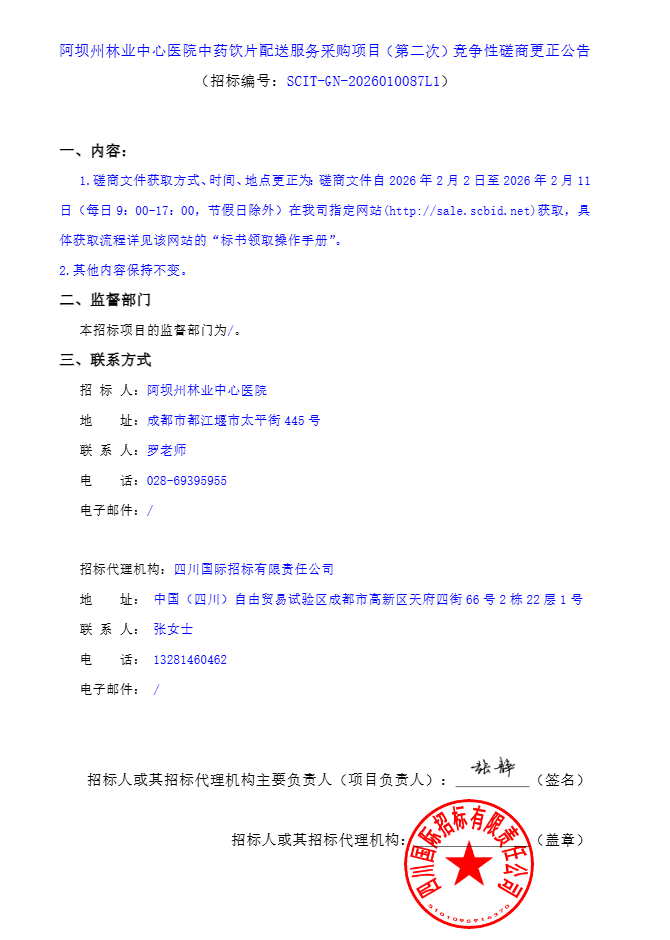 【都江堰市阿坝州林业中心医院】四川省阿坝州林业中心医院中药饮片配送服务采购项目(第二次)竞争性磋商更正公告