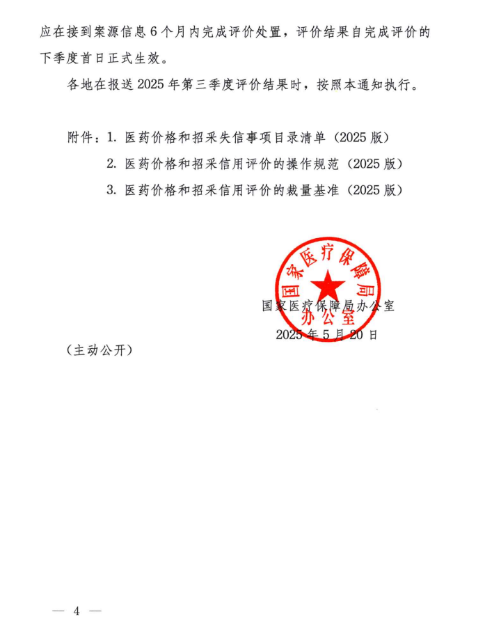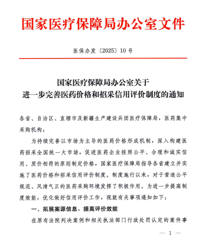 【河北】国家医疗保障局办公室关于进一步完善医药价格和招采信用评价制度的通知