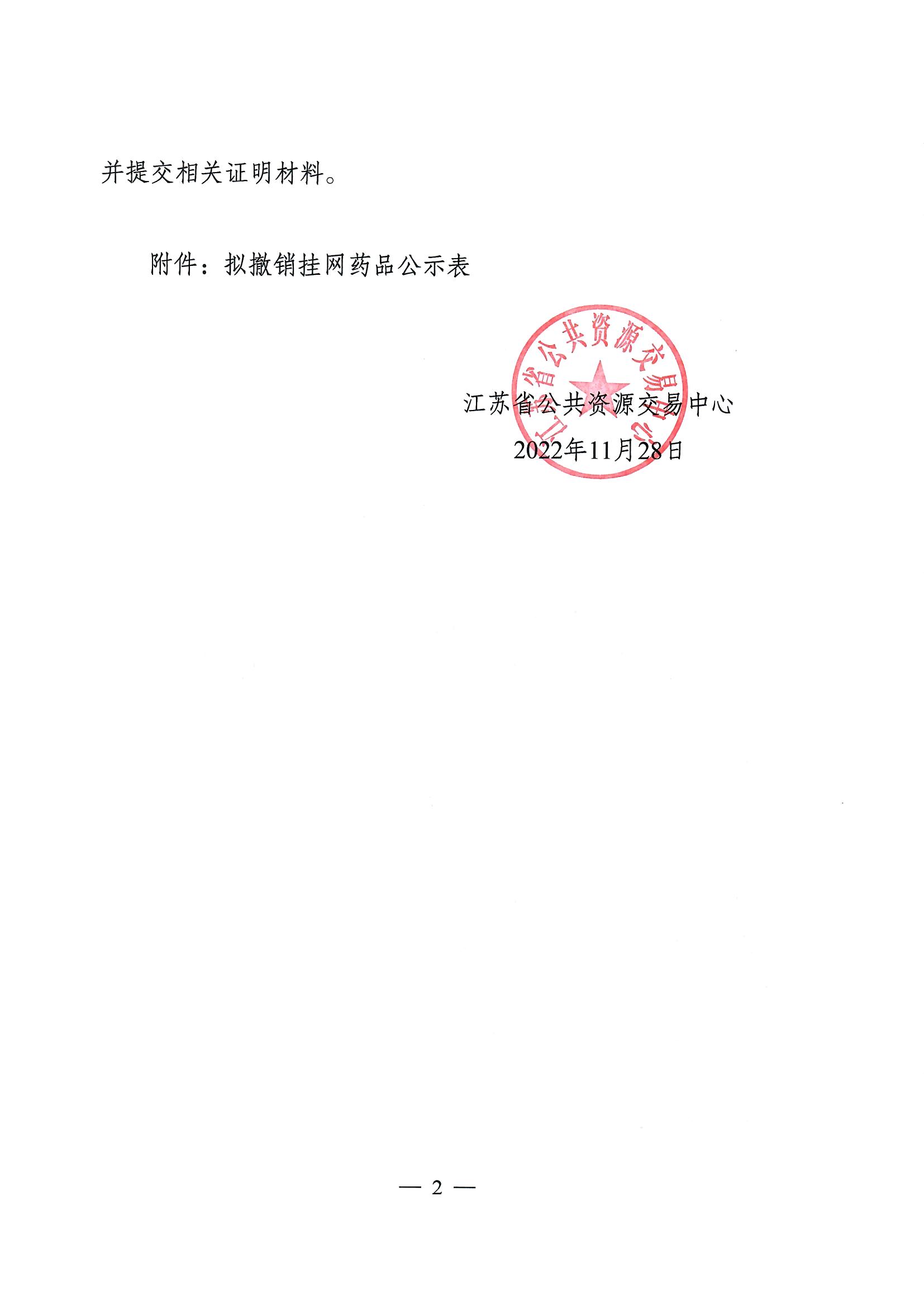 如有异议,企业须在公示期内通过江苏省公共资源交易平台(药品分类采购-其他-撤销挂网申诉(202211-2))进行申诉,并提交相关证明材料。