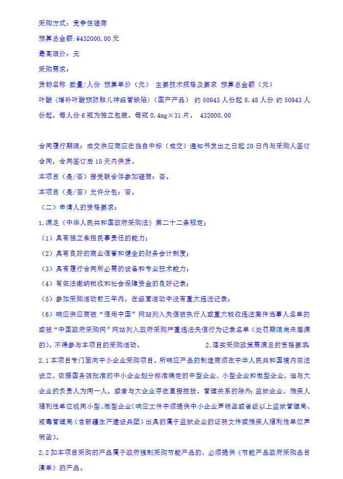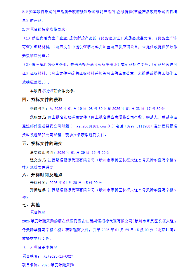 【赣州市卫生健康委员会】江西斯诺招标代理有限公司关于江西省赣州市卫生健康委员会2025年度叶酸采购(项目编号:JXSN2025-ZX-C027)的竞争性磋商采购公告