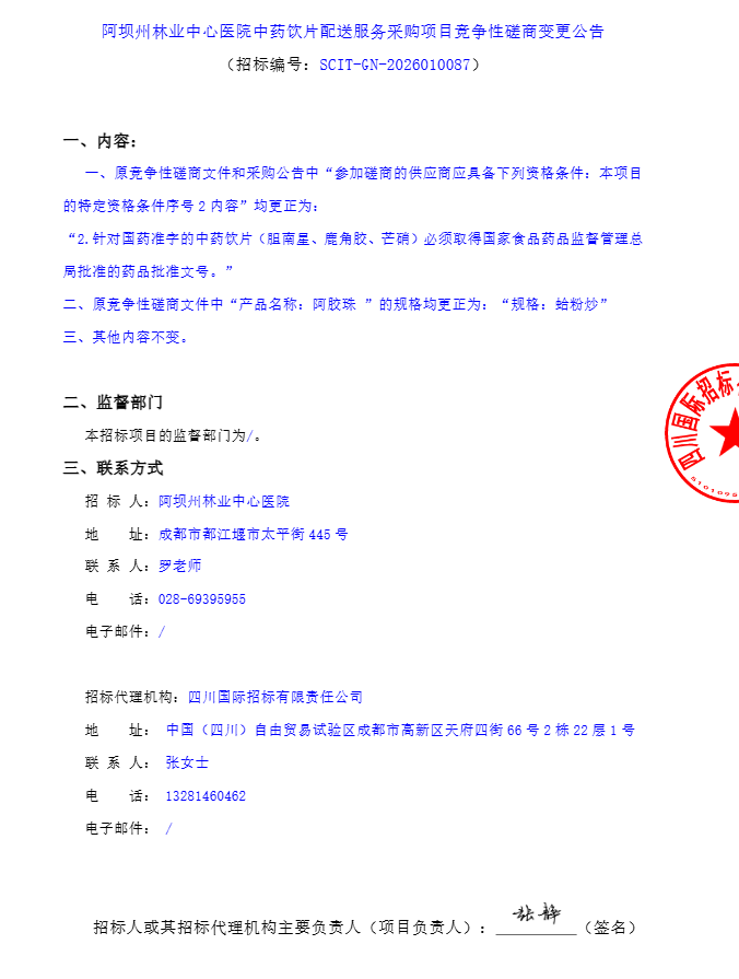 【阿坝州林业中心医院】四川省都江堰市阿坝州林业中心医院中药饮片配送服务采购项目竞争性磋商变更公告