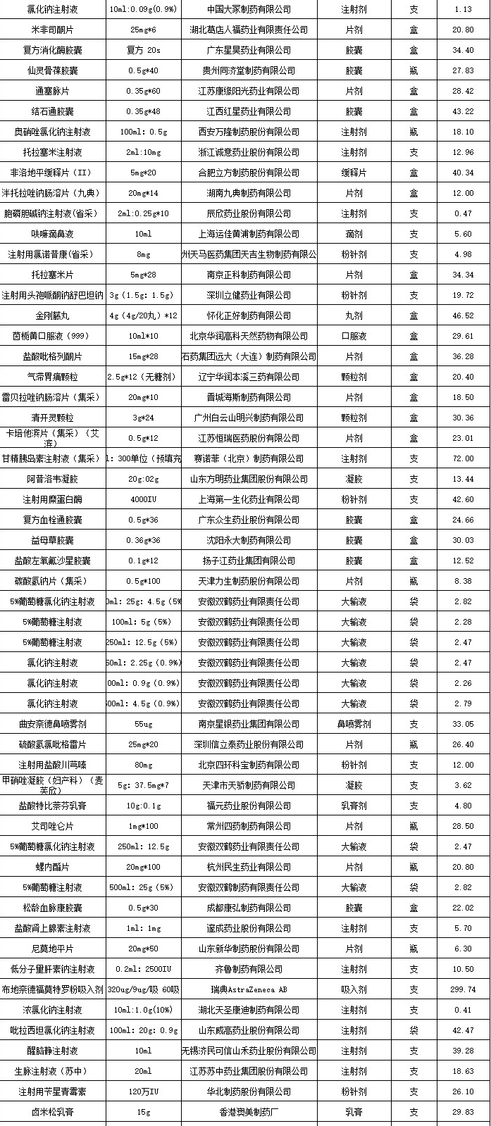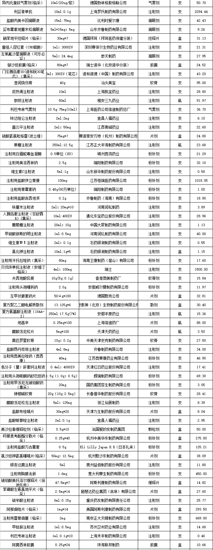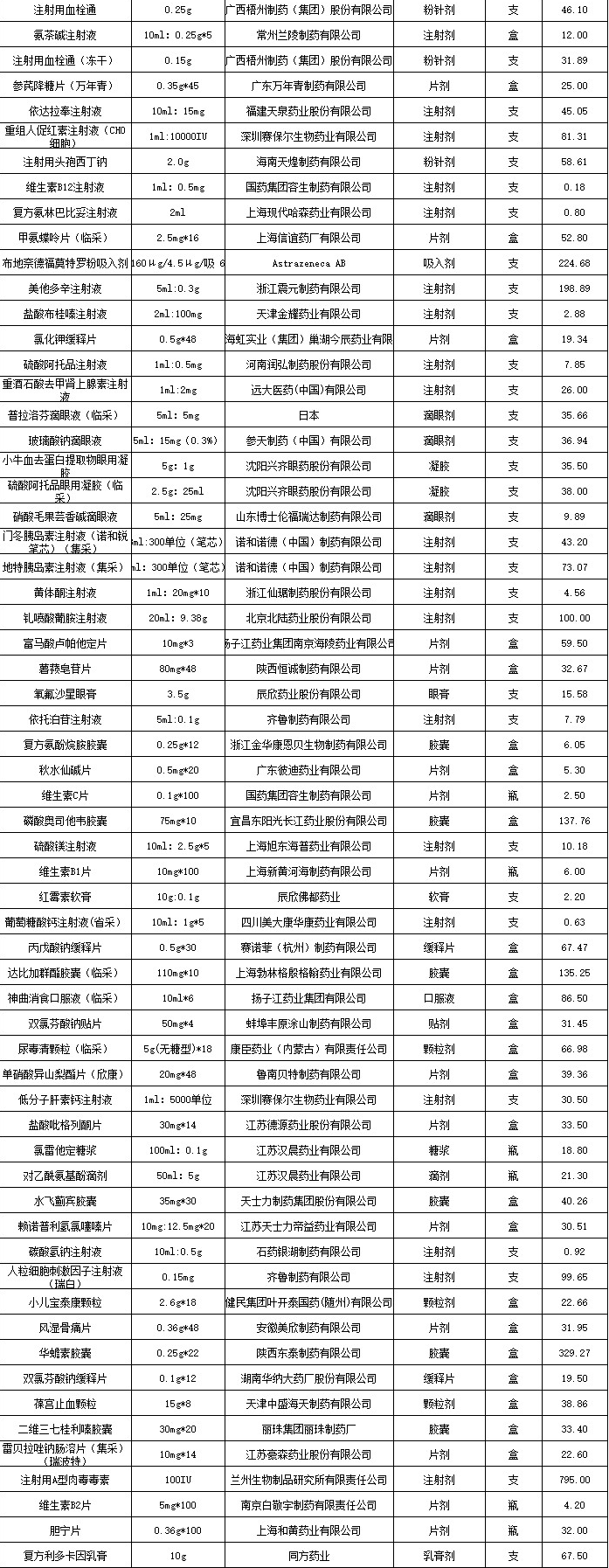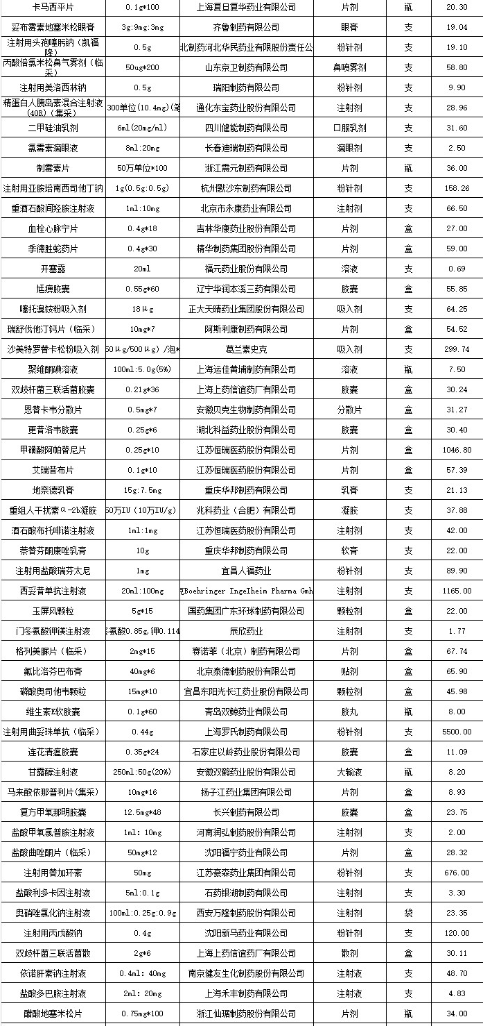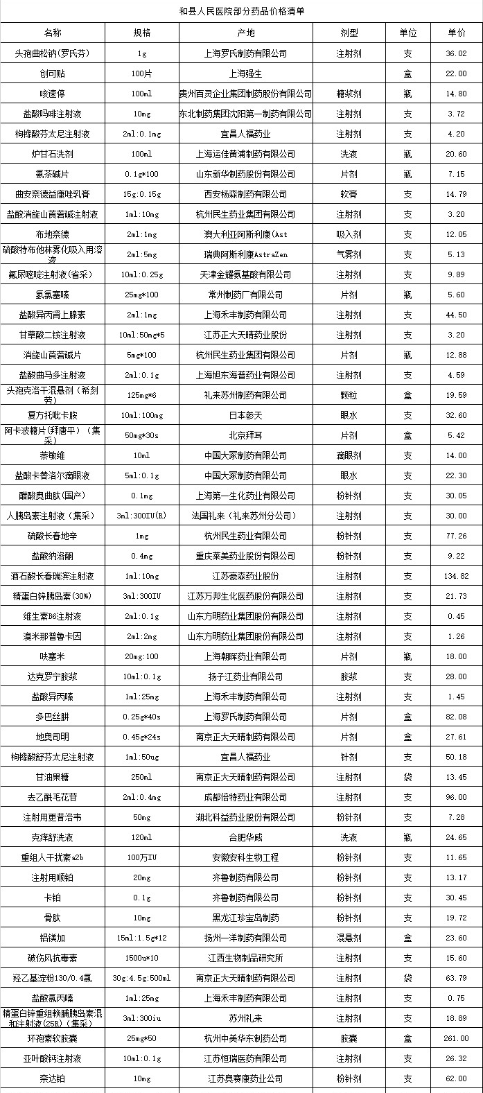 【马鞍山市和县人民医院】安徽省马鞍山市和县人民医院部分药品品规及价格信息