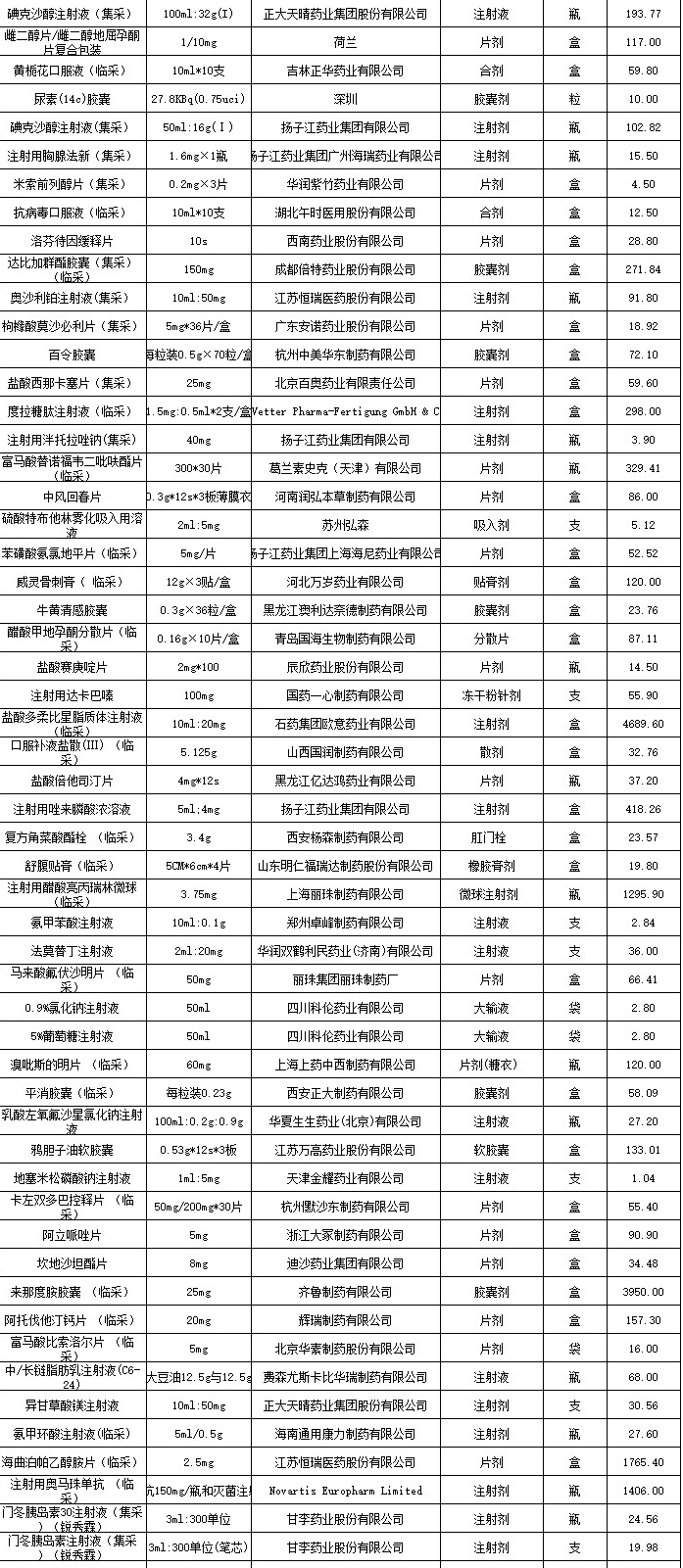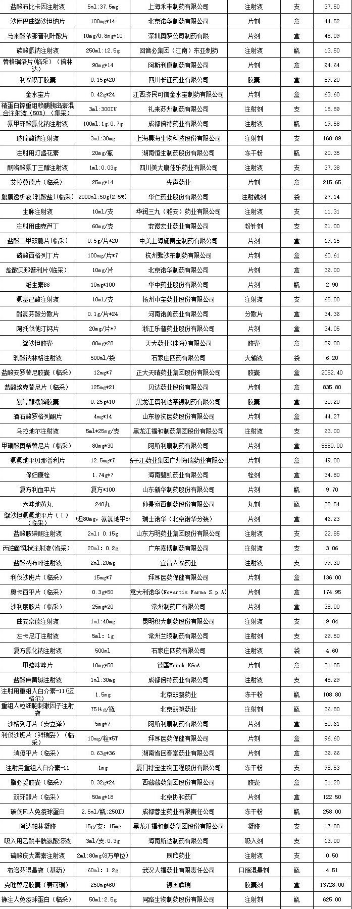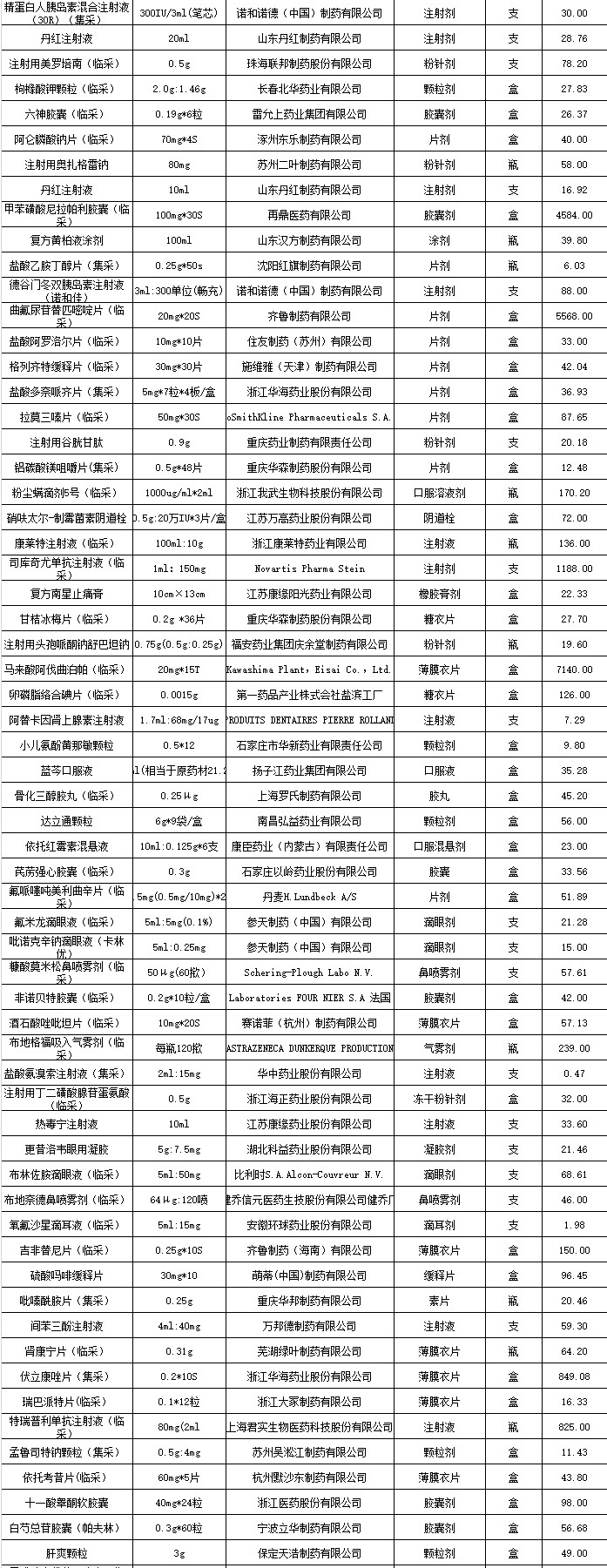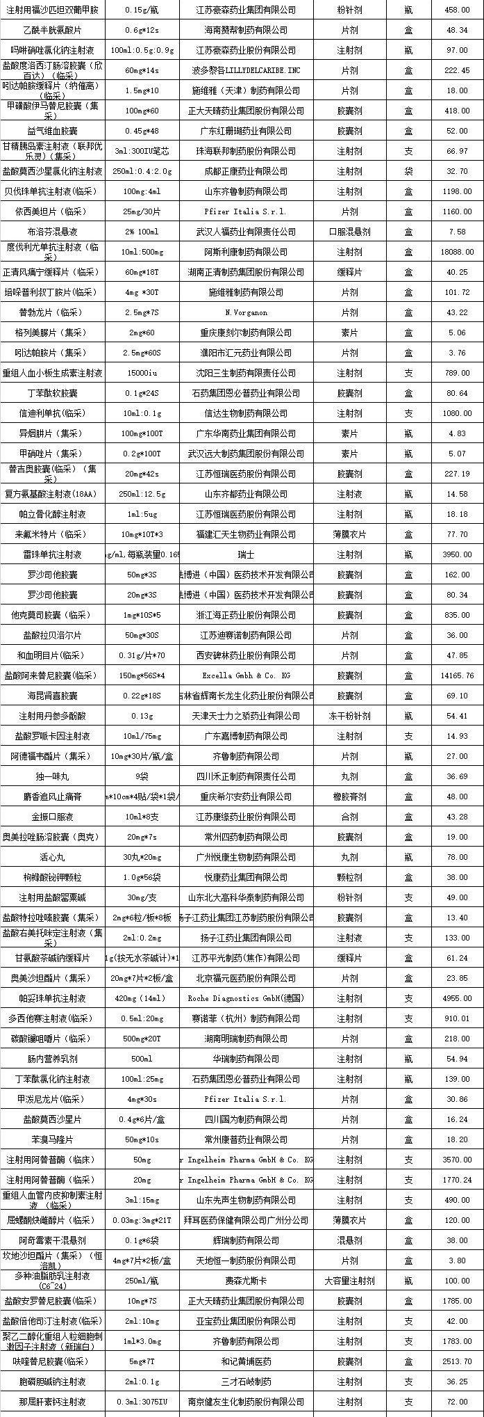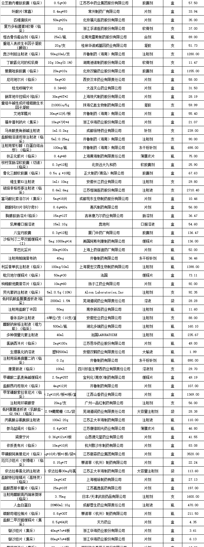 【马鞍山市和县人民医院】安徽省马鞍山市和县人民医院部分药品品规及价格信息