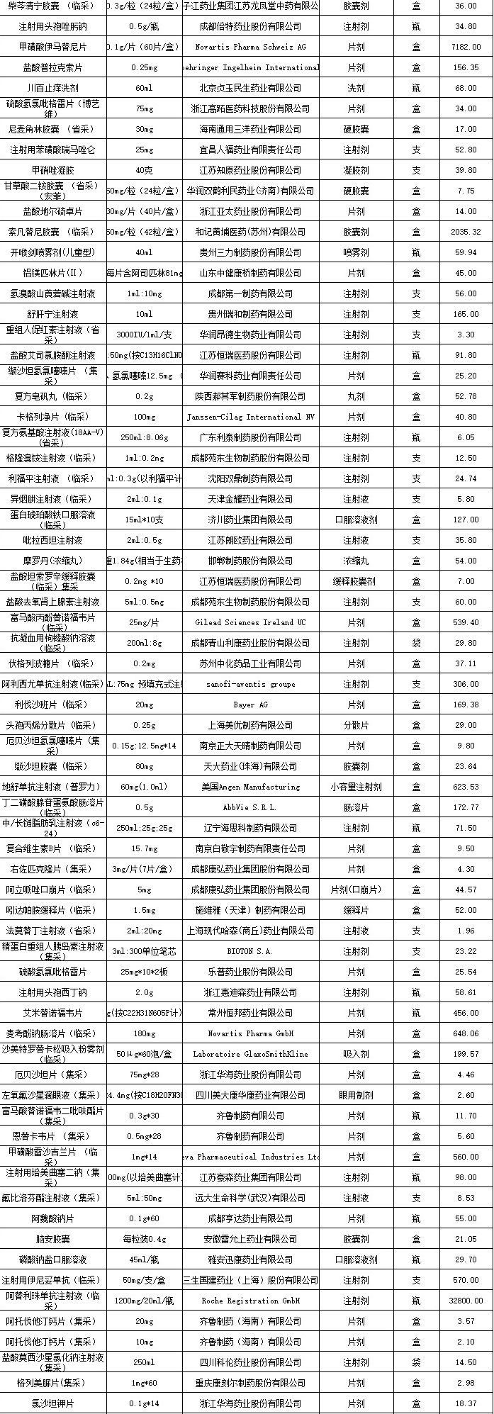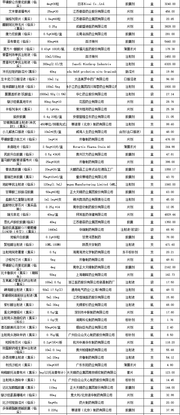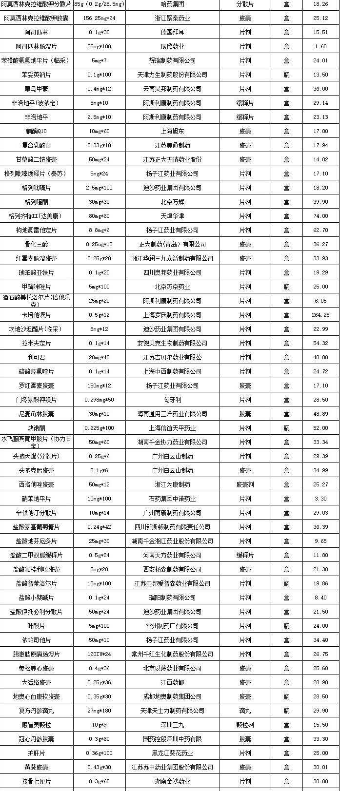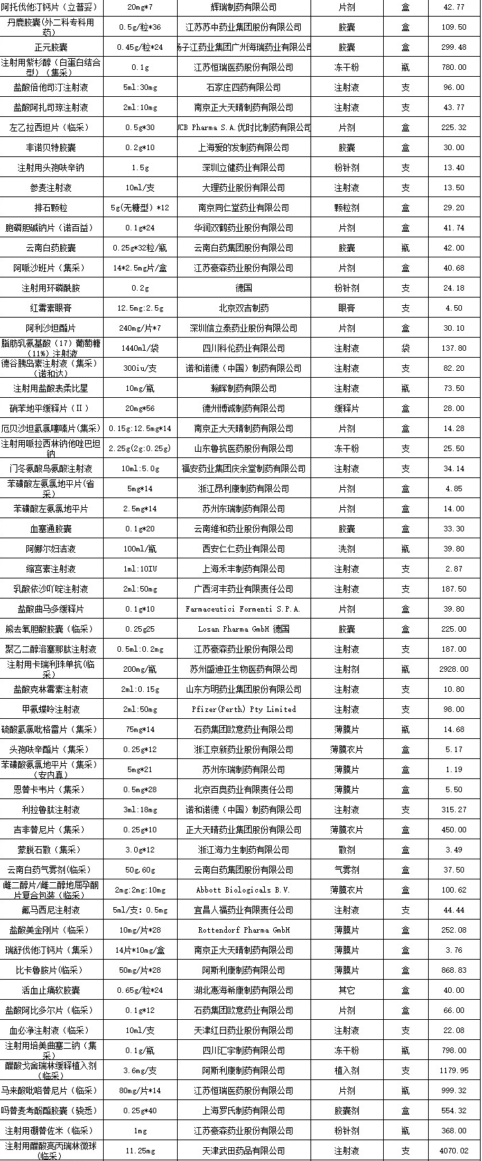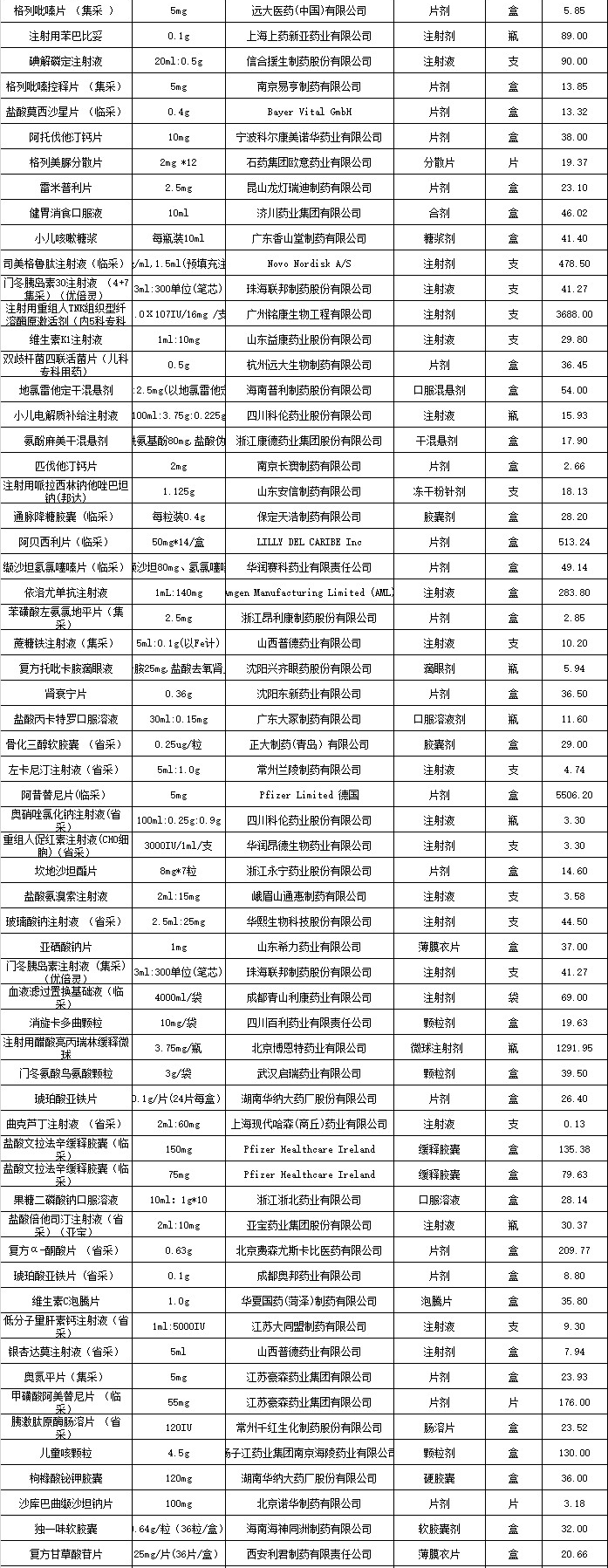 【马鞍山市和县人民医院】安徽省马鞍山市和县人民医院部分药品品规及价格信息