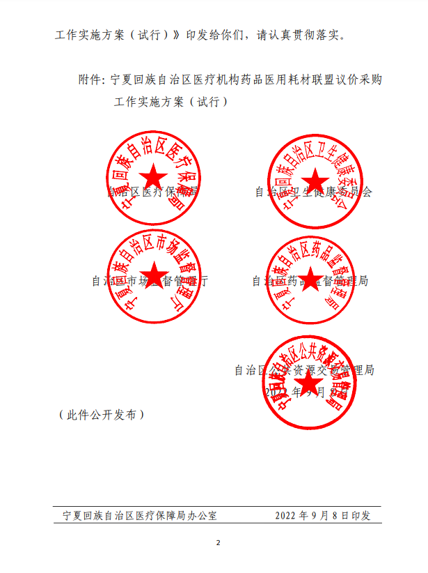 【宁夏】宁夏回族自治区医保局卫生健康委 市场监管厅 药监局 公共资源交易管理局关于印发《宁