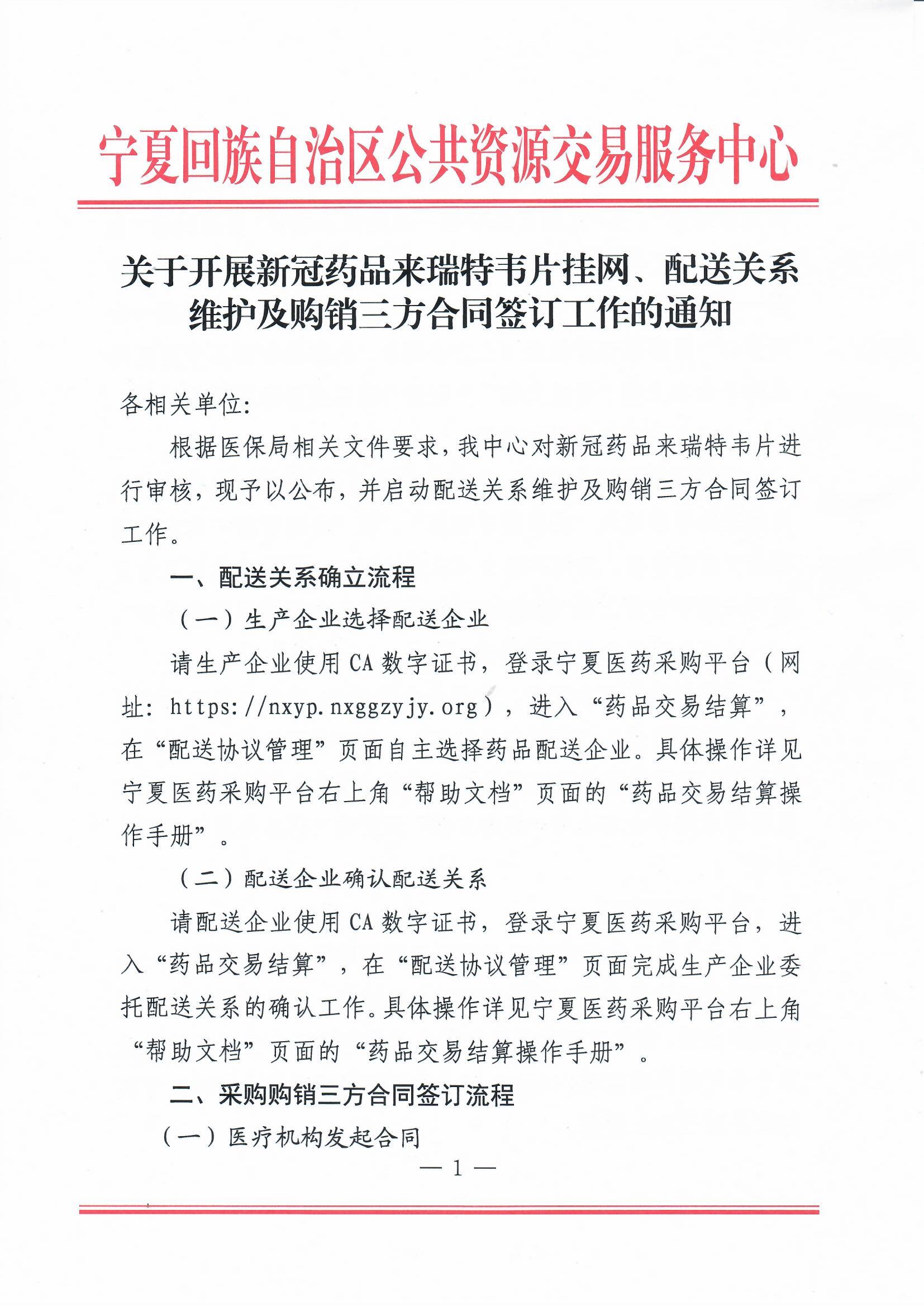 根据医保局相关文件要求,我中心对新冠药品来瑞特韦片进行审核,现予以公布,并启动配送关系维护及购销三方合同签订工作。