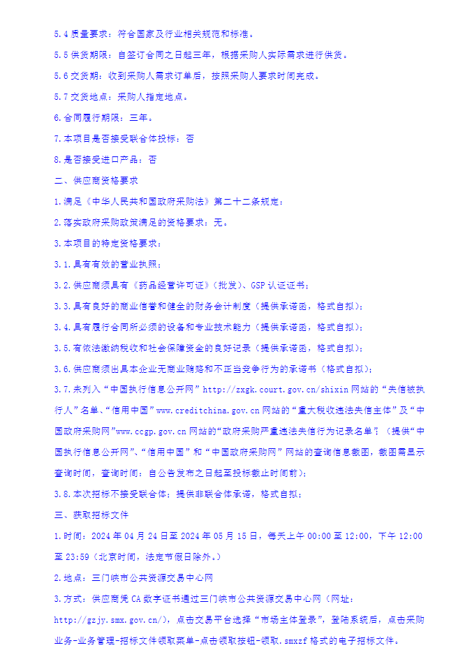 【三门峡市中心医院】河南省三门峡市中心医院康养中心药品配送项目公开招标公告