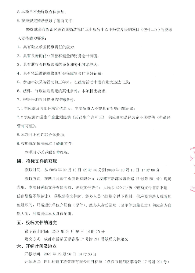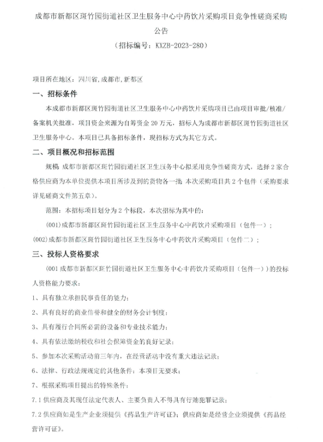 【成都市新都区斑竹园街道社区卫生服务中心】四川省成都市新都区斑竹园街道社区卫生服务中心中药饮片采购项目竞争性磋商采购公告