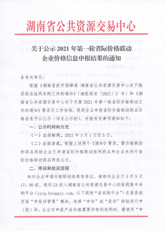 关于公示2021年第一轮省际价格联动企业价格已申报信息https://yycg.hnsggzy.com/NoticeBoard/ShowInfoModuleLD.aspxId=100315