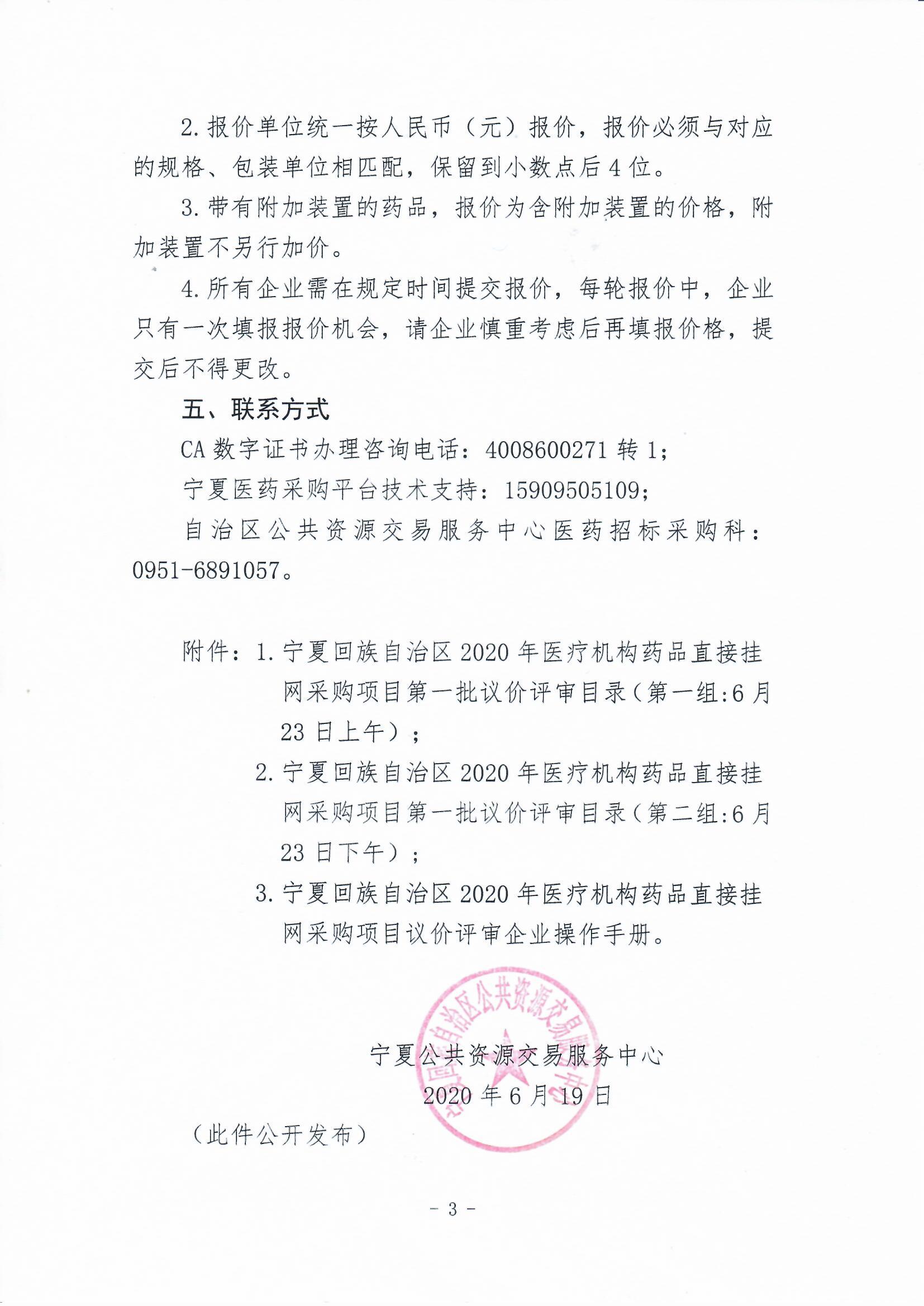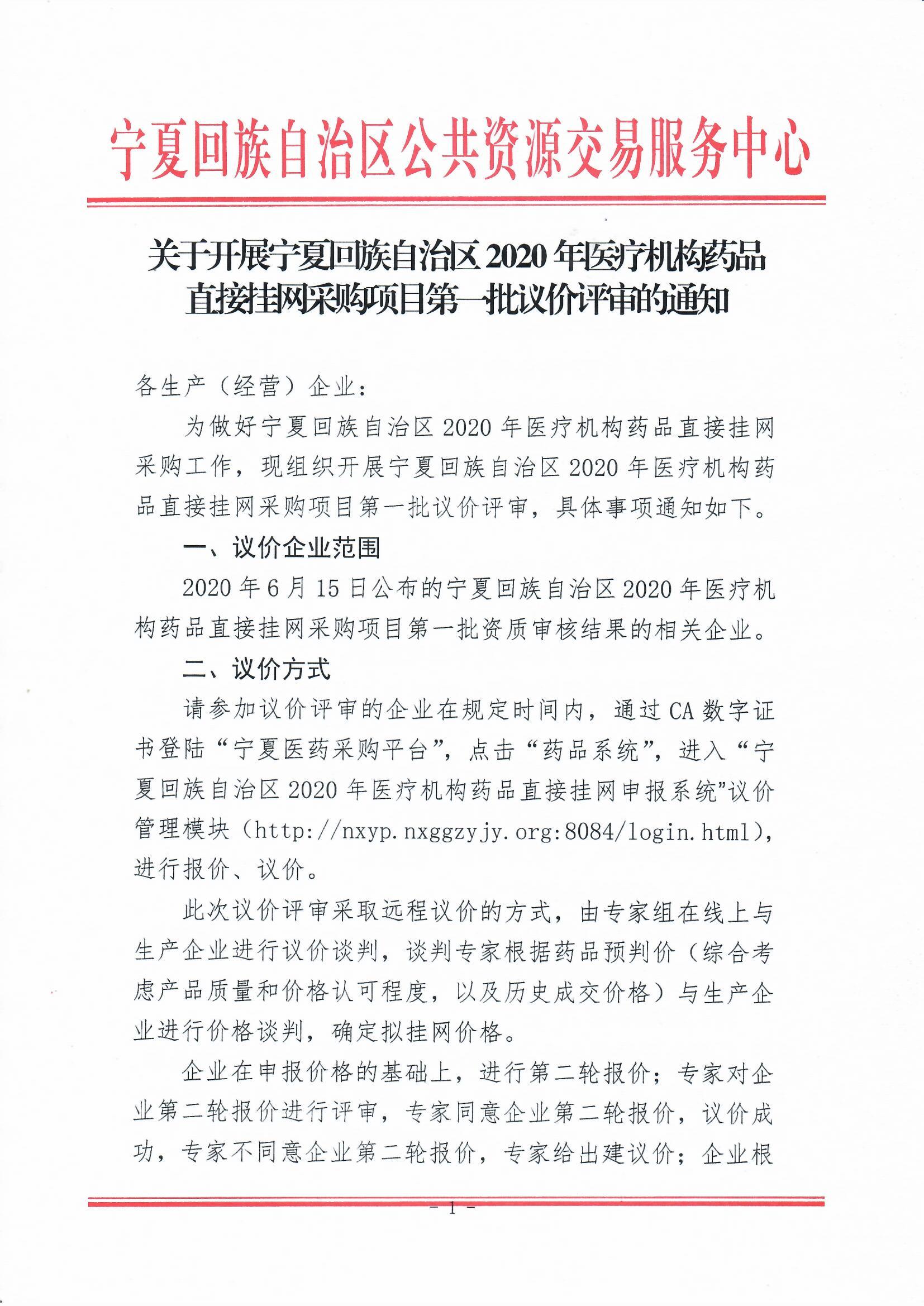 【宁夏回族自治区】关于开展宁夏回族自治区2020年医疗机构药品直接挂网采购项目第一批议价评审的通知