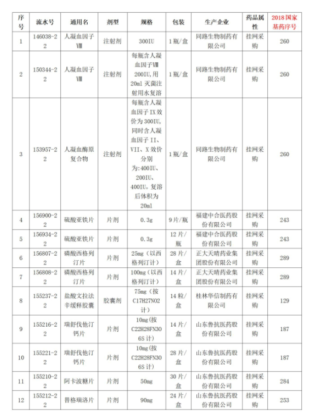 根据省卫生健康委员会《关于对2018年版国家基本药物序号标识有关事项的函》,现对药品交易和招标系统部分药品目录予以相应国家基本药物序号标识(见下表),请相关医疗机构及时调整采购数据信息。