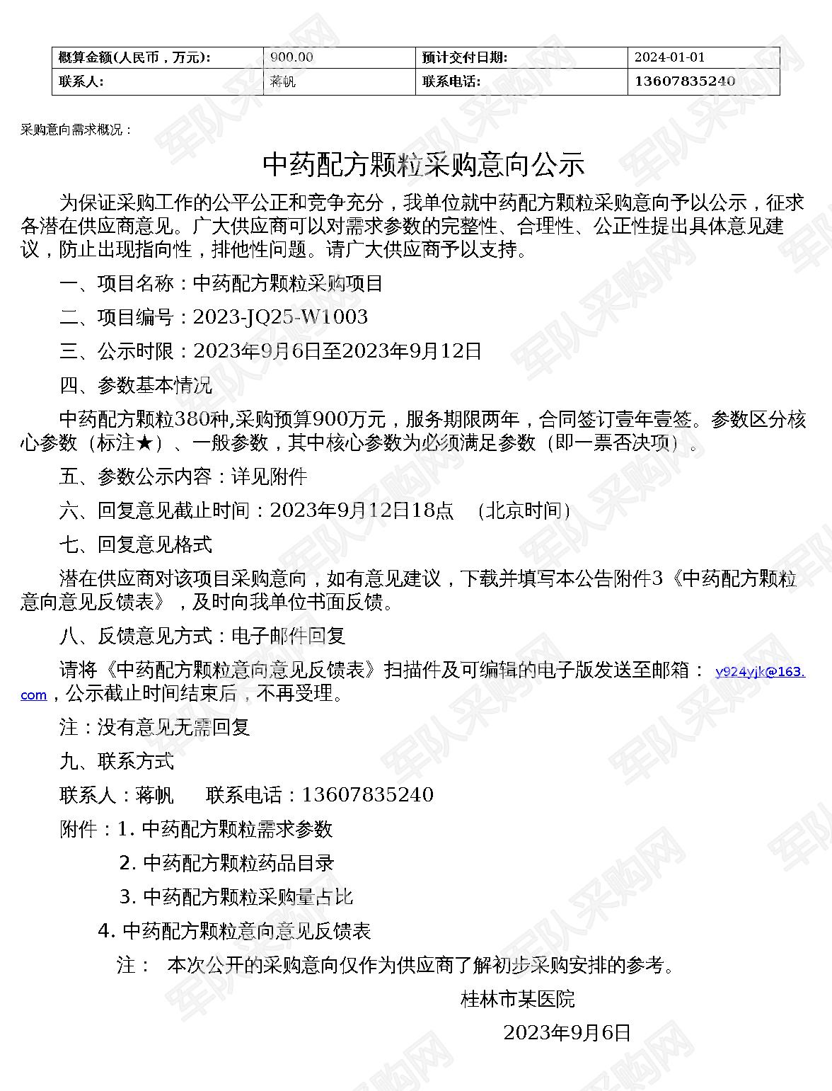 【军队采购】军队采购网中药配方颗粒采购项目(2023-JQ25-W1003)
