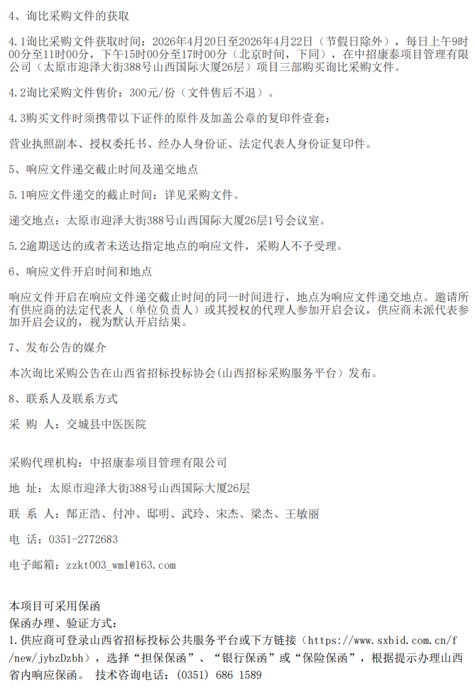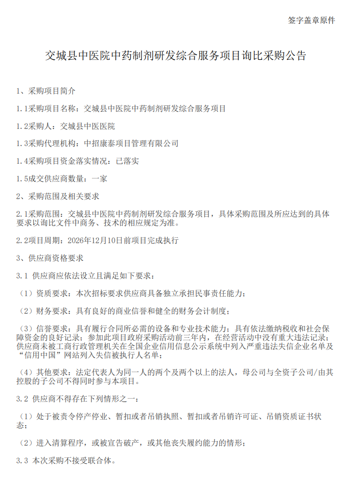 【吕梁市交城县中医院】山西省吕梁市交城县中医院中药制剂研发综合服务项目询比采购公告