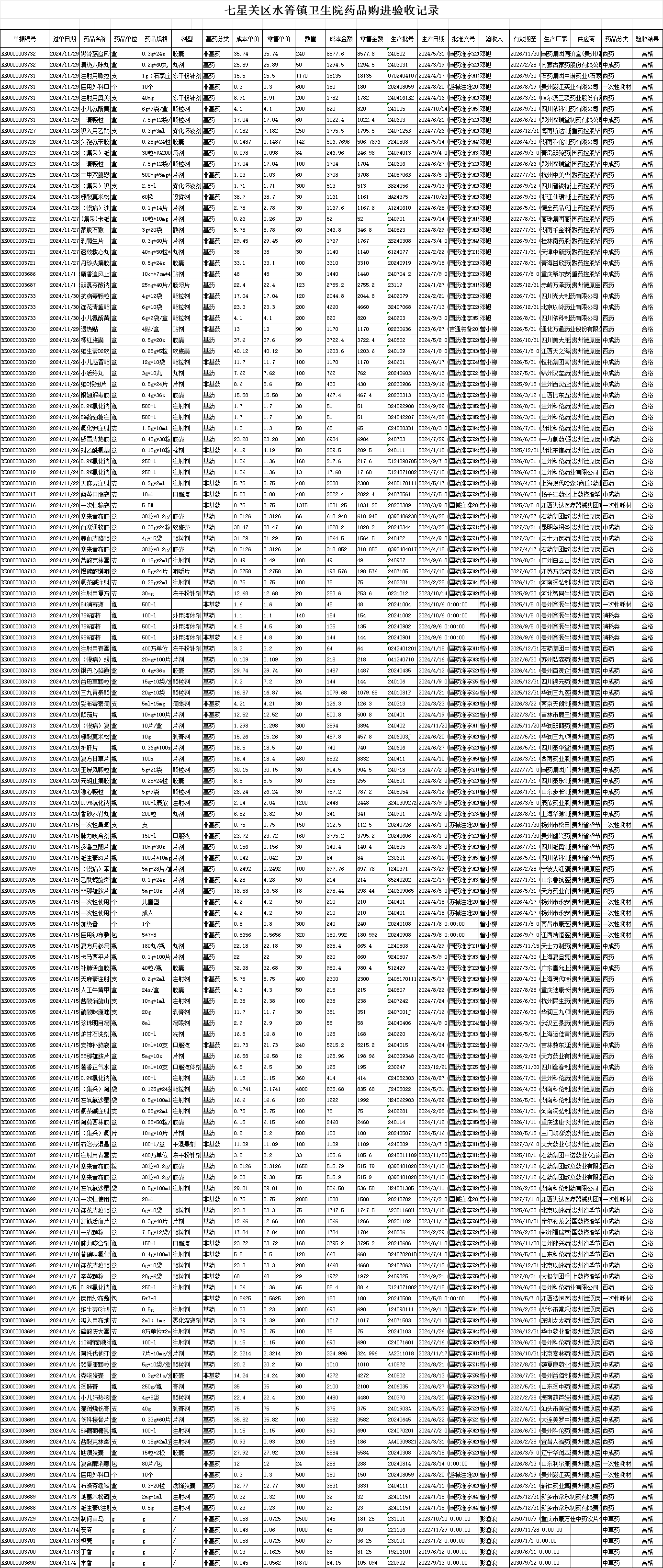 【毕节市七星关区水箐镇卫生院】贵州省毕节市七星关区水箐镇卫生院2024年11月药品购销验收情况