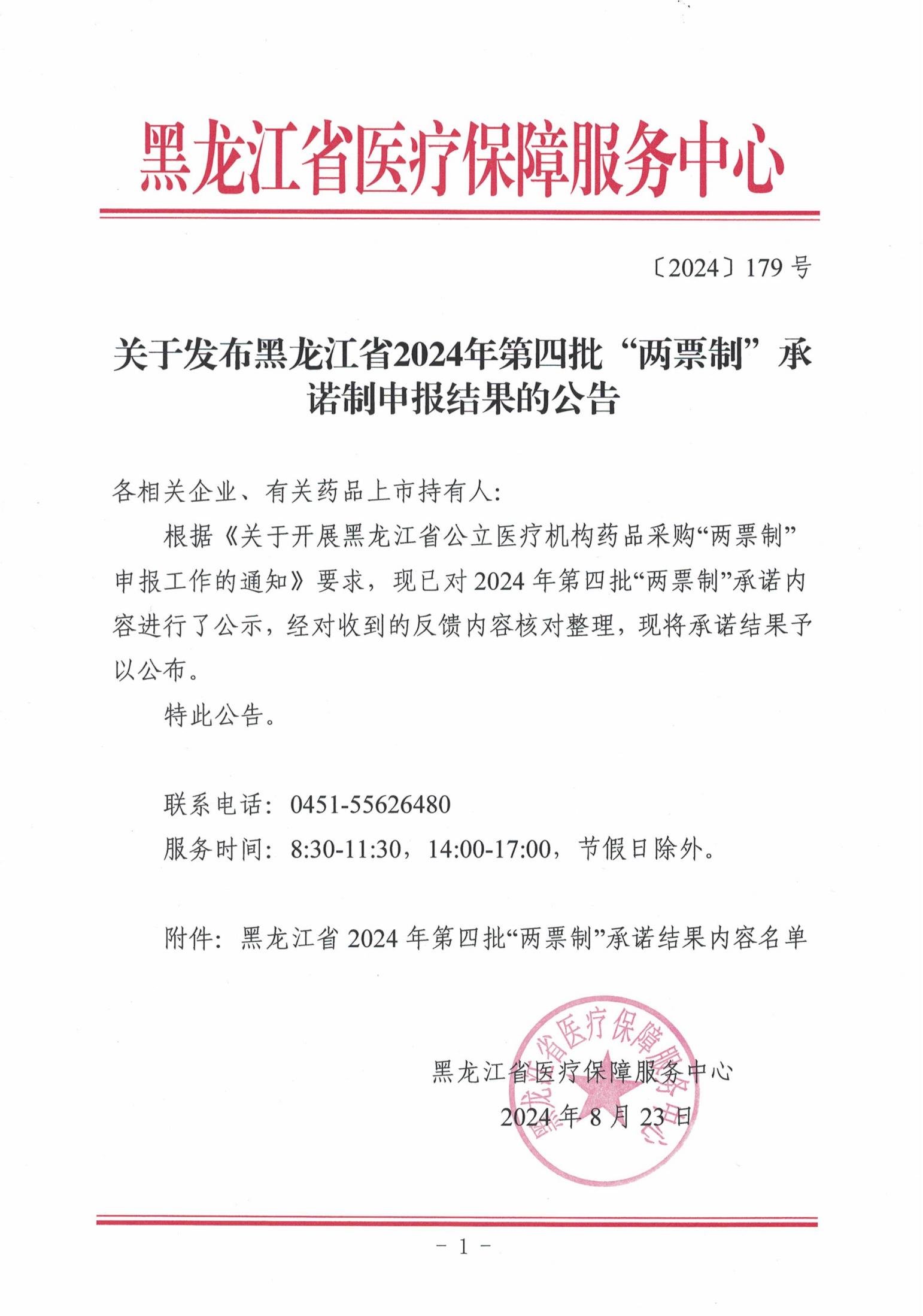 【黑龙江】关于发布黑龙江省2024年第四批两票制承诺制申报结果的公告