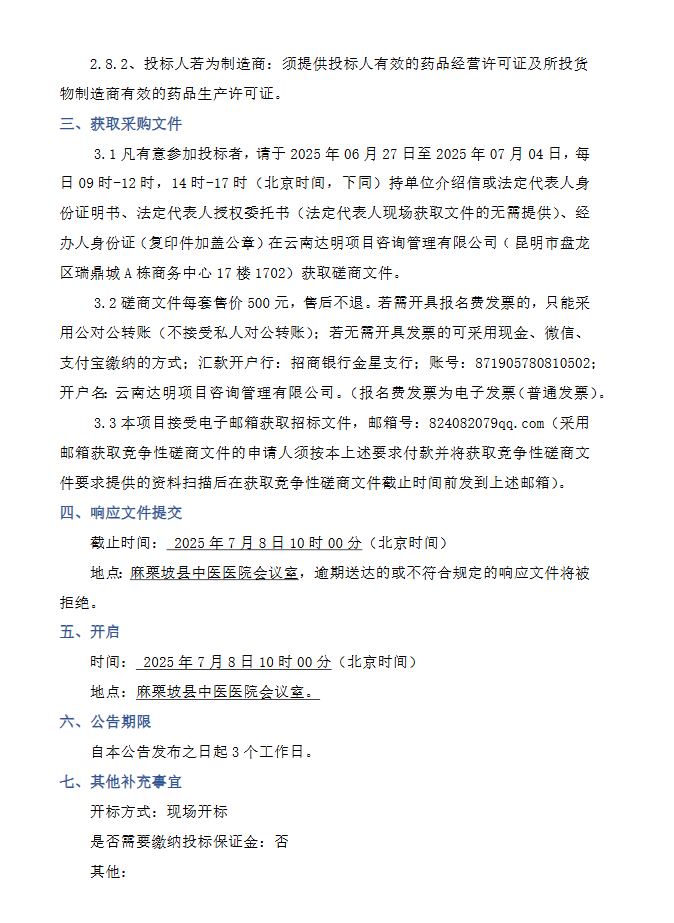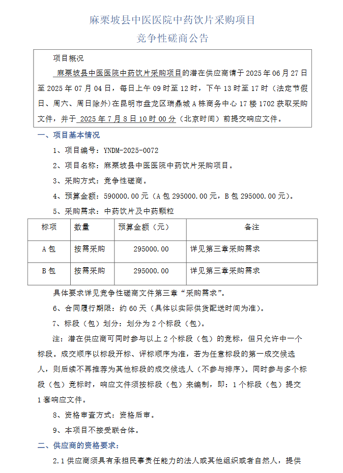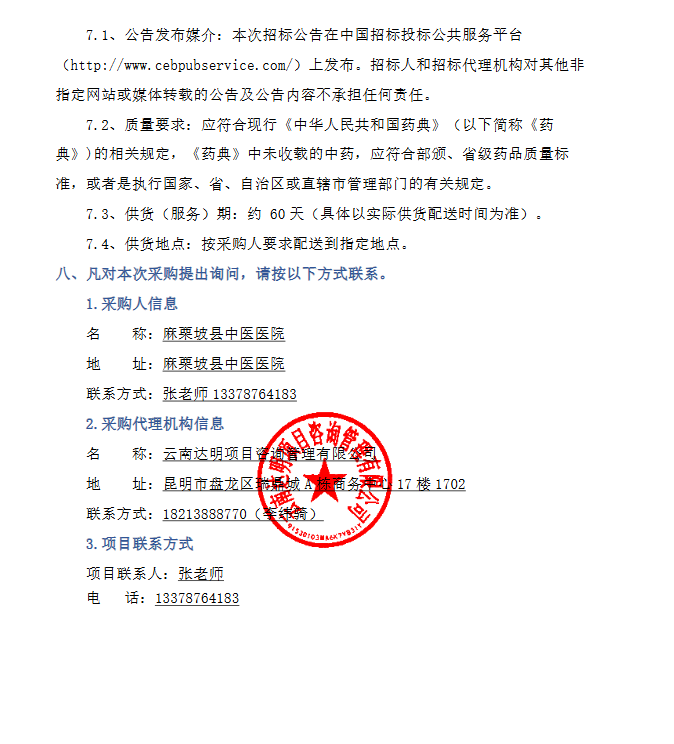 【文山壮族苗族自治州麻栗坡县中医医院】云南省文山壮族苗族自治州麻栗坡县中医医院中药饮片采购项目