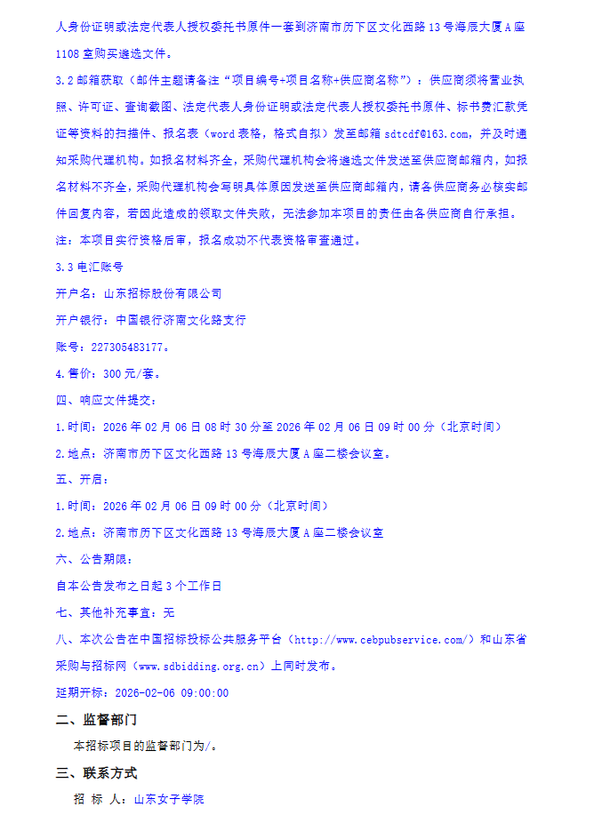 【山东女子学院】山东女子学院长清校区医务室药品及医疗器械耗材供应商遴选项目变更公告