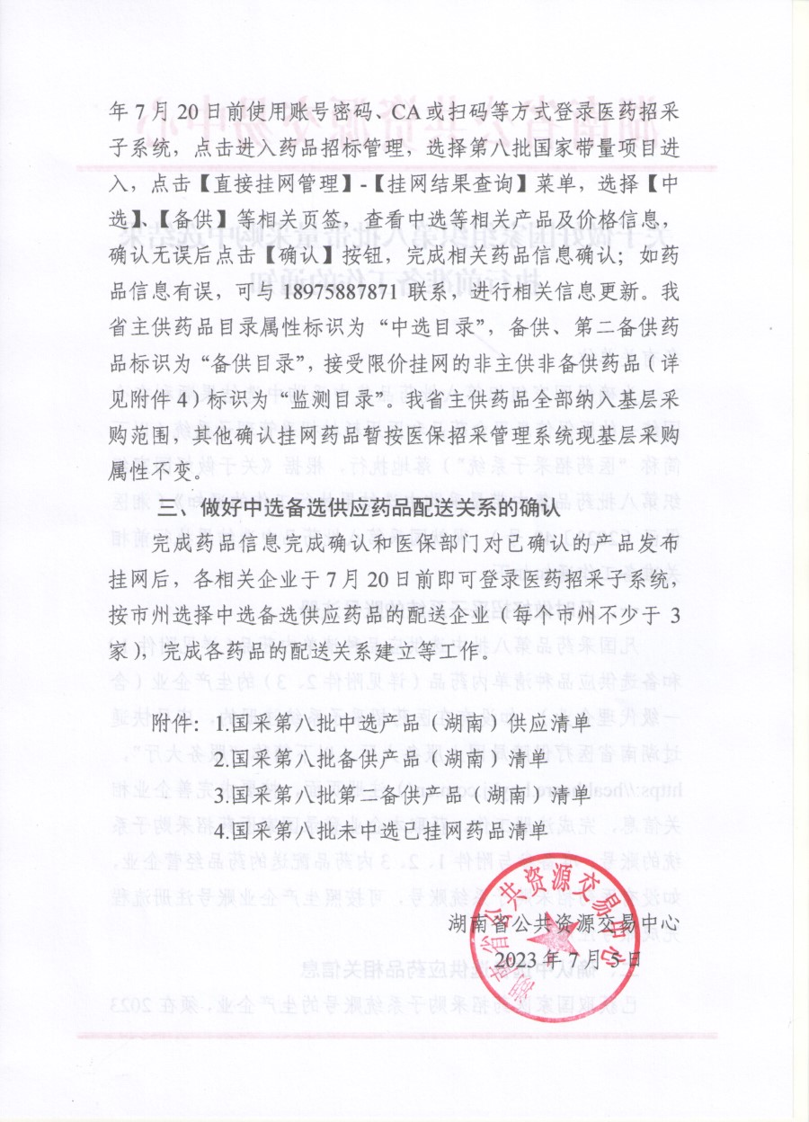 为确保国家组织第八批药品集中采购中选结果顺利在全国统一的医保信息平台药品和医用耗材招采管理子系统(以下简称“医药招采子系统”)落地执行,根据《关于做好国家组织第八批药品集中带量采购中选结果执行工作的通知》(湘医保函〔2023〕48号),现就国采第八批药品中选结果执行前相关准备工作通知如下: