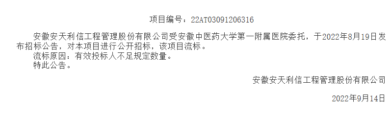 【安徽中医药大学第一附属医院】采购明胶空心胶囊流标公示