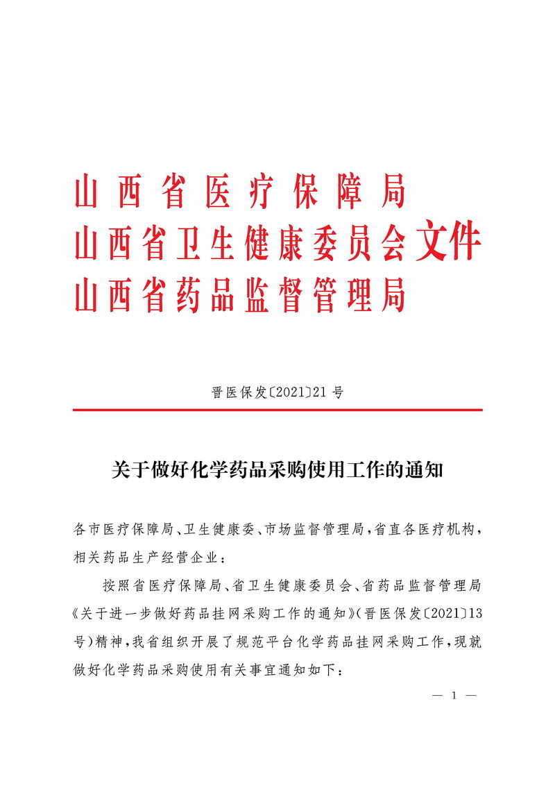 【山西】山西省(转发)关于做好化学药品采购使用工作的通知