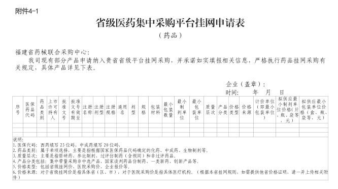 (1)省级医药集中采购平台挂网申请表在福建招采子系统下载。