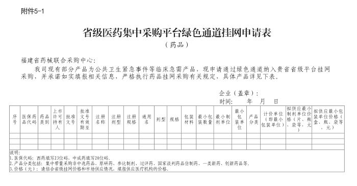 (2)省级医药集中采购平台绿色通道挂网申请表在福建招采子系统下载。