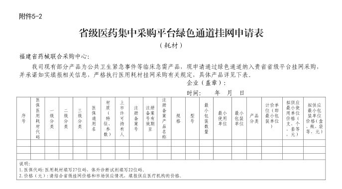 5-2.省级医药集中采购平台绿色通道挂网申请表(耗材)