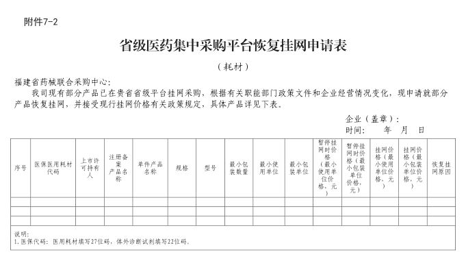 7-2.省级医药集中采购平台恢复挂网申请表(耗材)