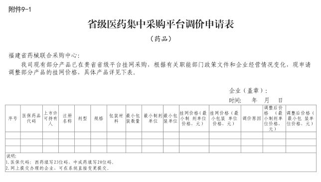 (1)省级医药集中采购平台调价申请表在福建招采子系统下载。
