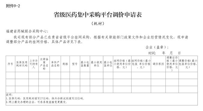 9-2.省级医药集中采购平台调价申请表(耗材)