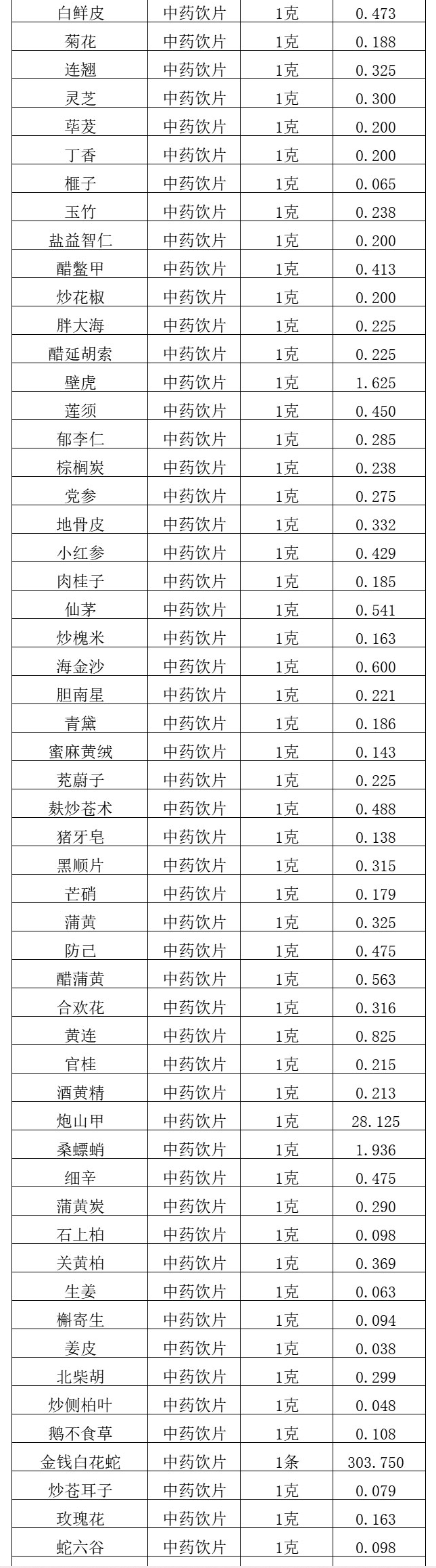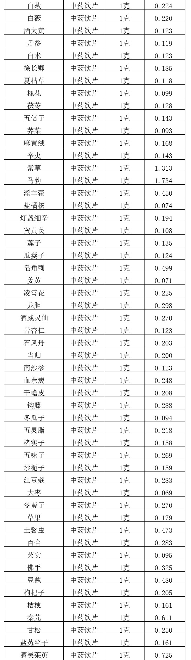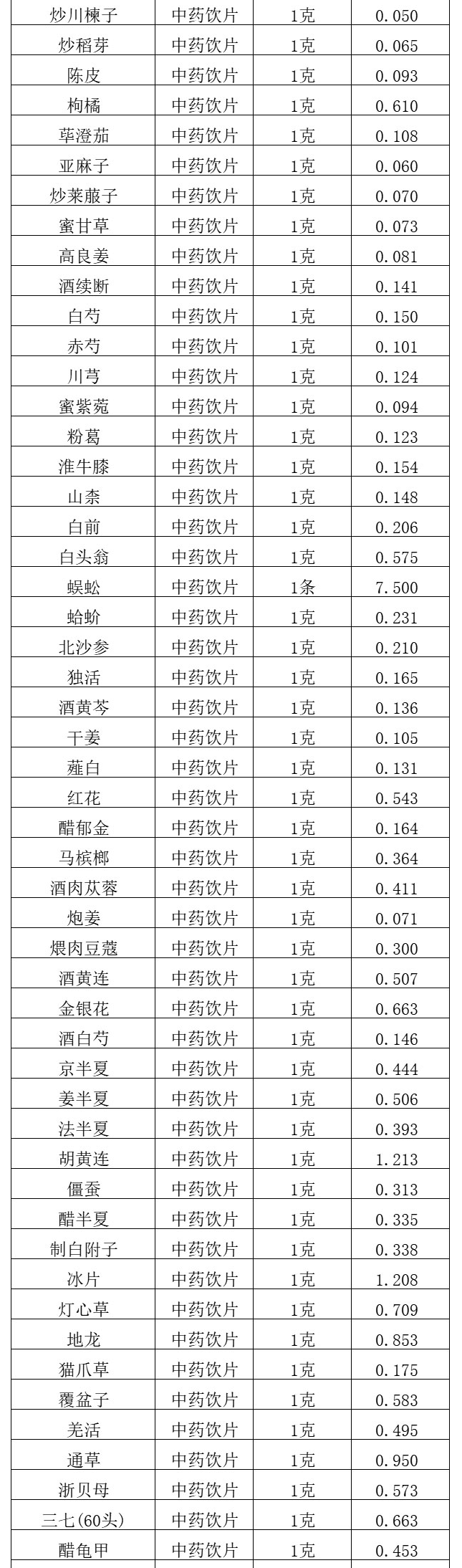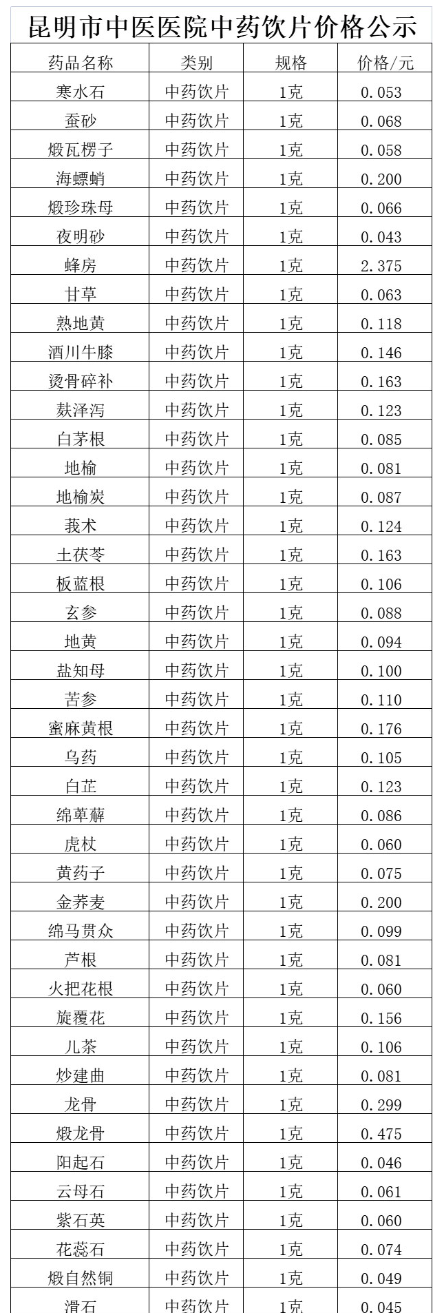 【昆明市中医医院】云南省昆明市中医医院中药饮片价格公示