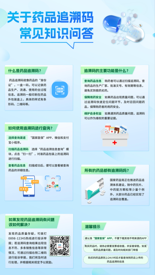 为加强药品监管,维护参保群众购药用药知情权及监督权,切实落实“应采尽采、依码结算、依码支付”“卖药必扫码,买药可验码”要求,现就做好推广药品追溯码信息查询工作通知如下。