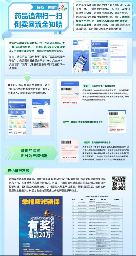 (二)各医保定点零售药店负责开展药品追溯码信息查询推广工作,主动履行告知义务。在经营场所公开摆放药品追溯码常见知识宣传海报(见附件1)及国家医保APP、医保微信和支付宝小程序的“药品追溯信息查询”模块查询药品溯源信息的流程图(见附件2),帮助购药群众通过“药品追溯信息查询”判断药品是否存在回流、二次销售或二次报销等情况,保障购药群众合法权益。鼓励各非医保定点零售药店开展药品追溯码信息查询的宣传推广工作。