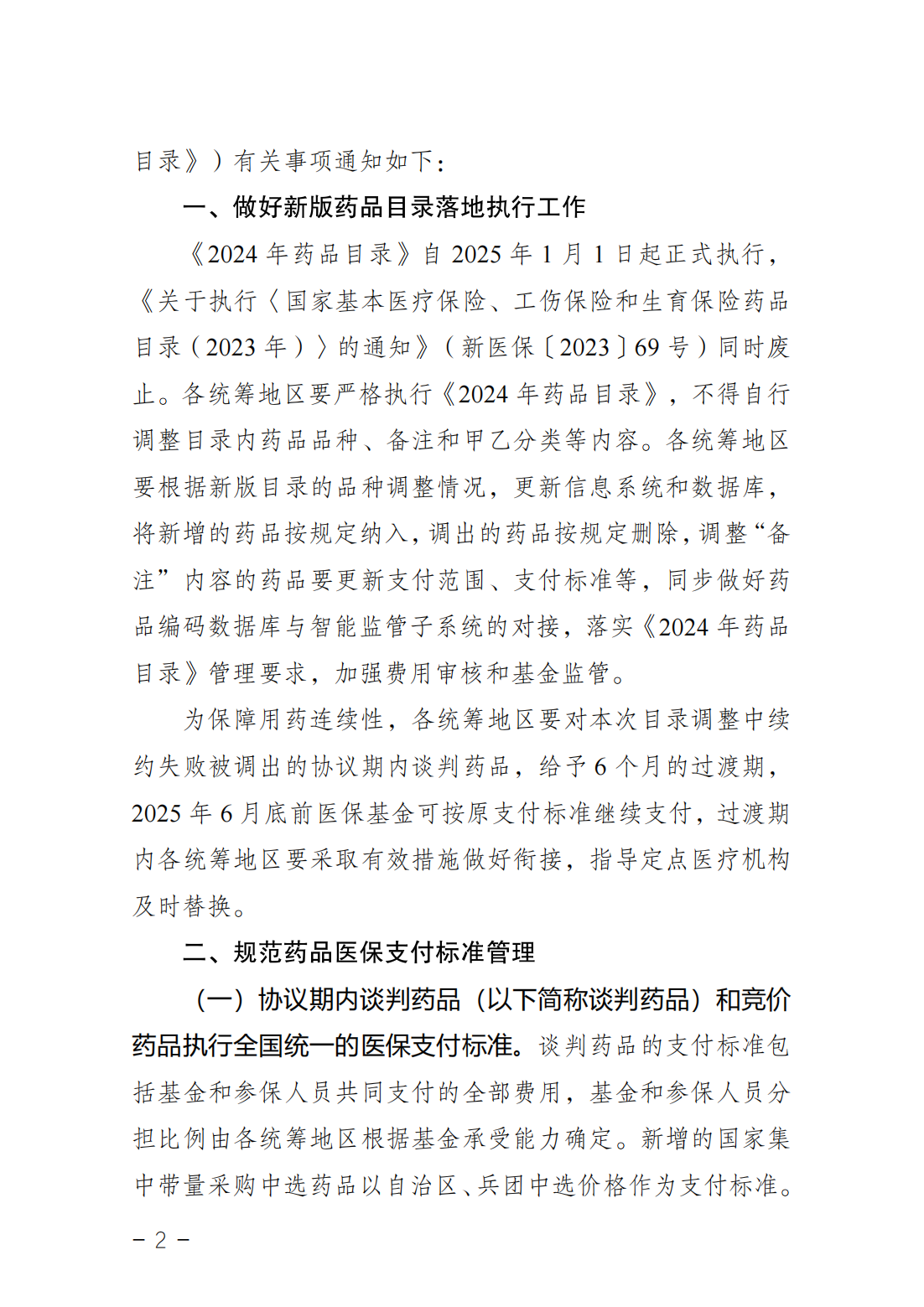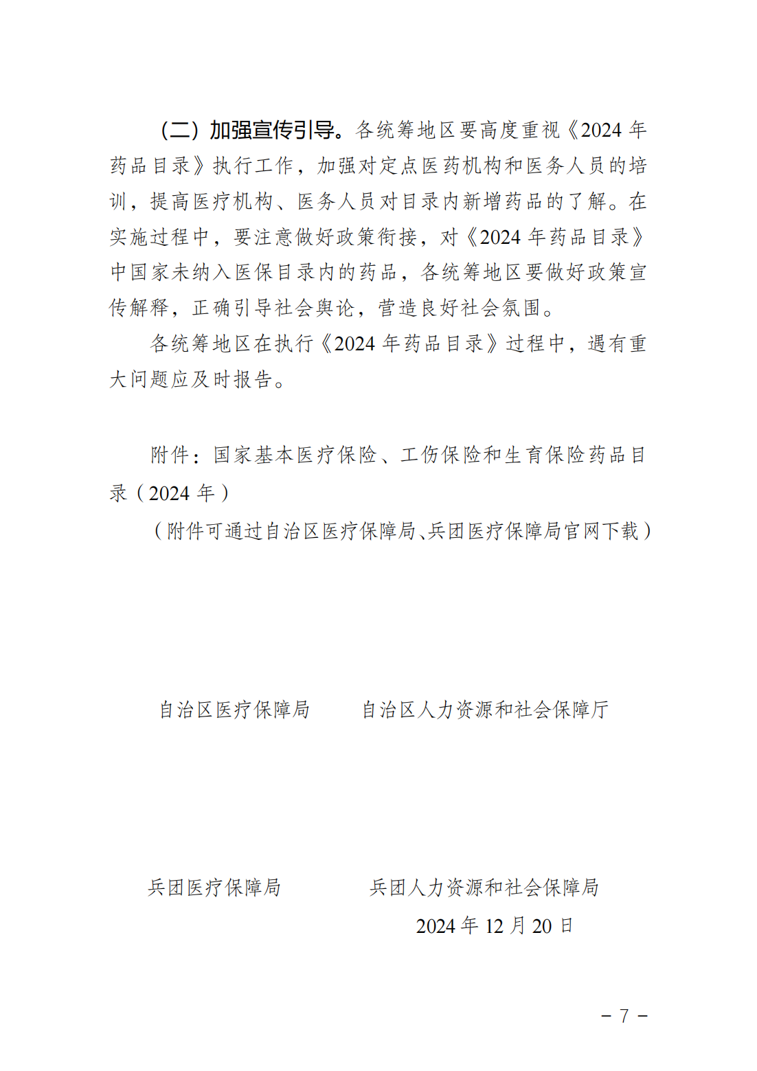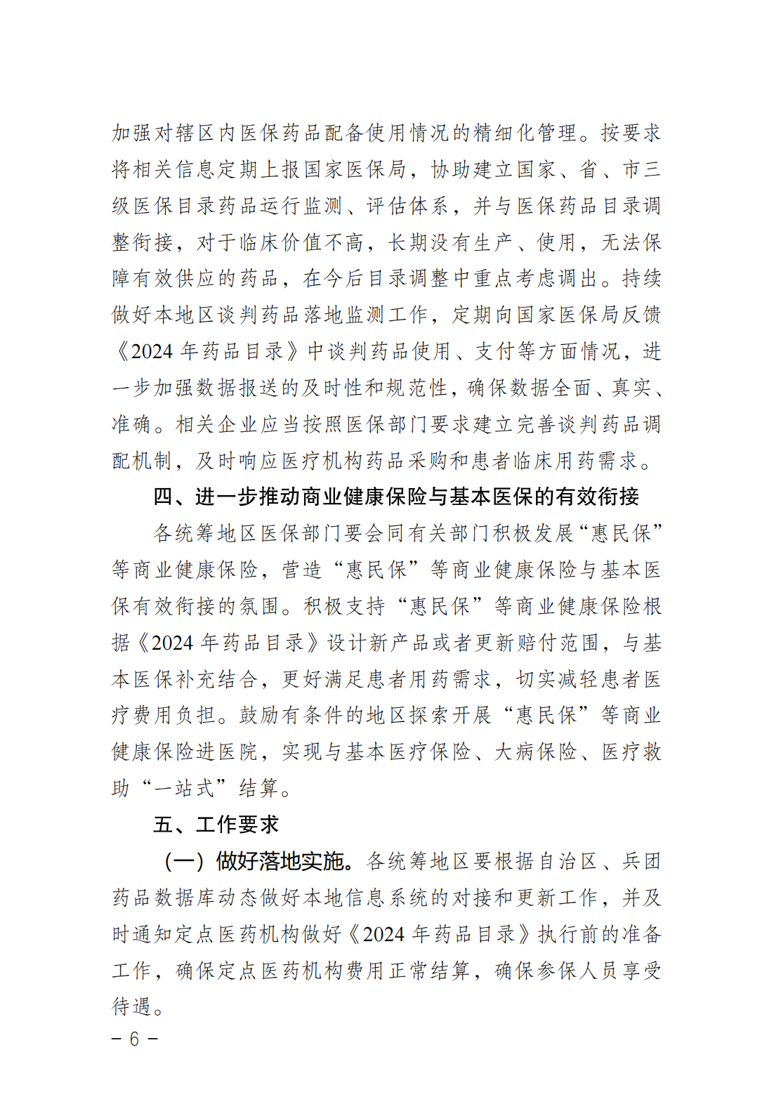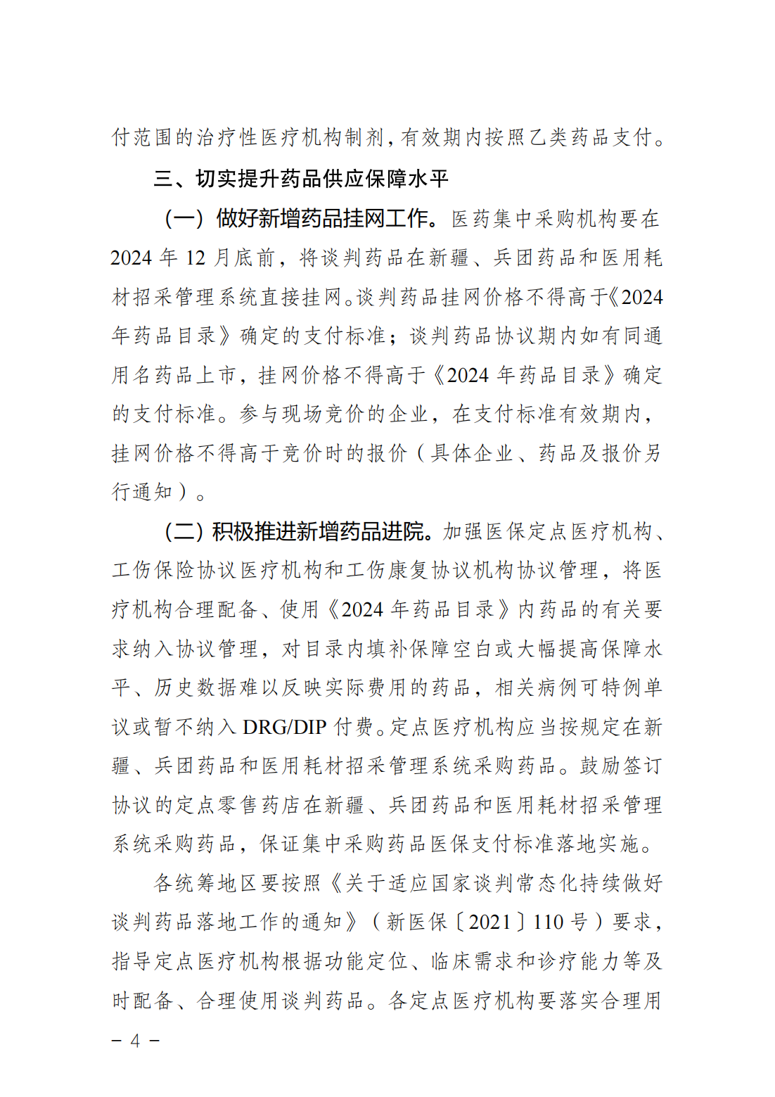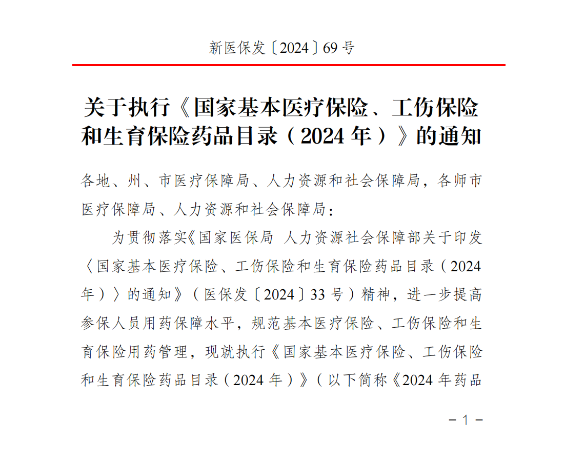 【新疆】关于执行《国家基本医疗保险、工伤保险和生育保险药品目录(2024年)》的通知