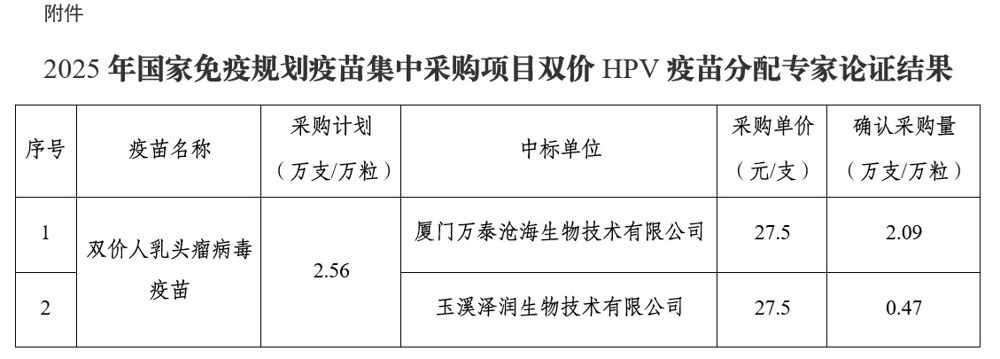 根据《2025年国家免疫规划疫苗集中采购项目-双价人乳头瘤病毒(HPV)疫苗采购项目采购结果相关事宜的通知》要求,我中心于2025年12月26日组织召开了2025年国家免疫规划疫苗集中采购项目双价HPV疫苗分配专家论证会。