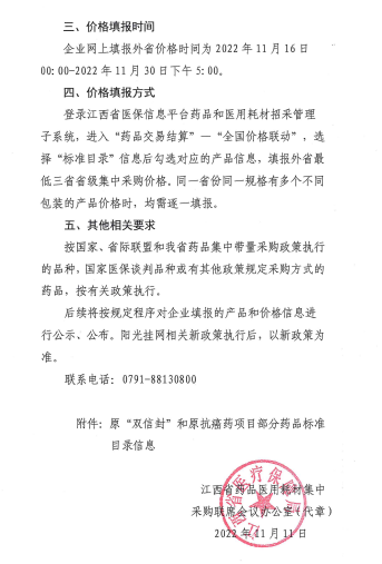 【江西】江西省关于原“双信封”和原抗癌药项目药品实行价格联动的通知
