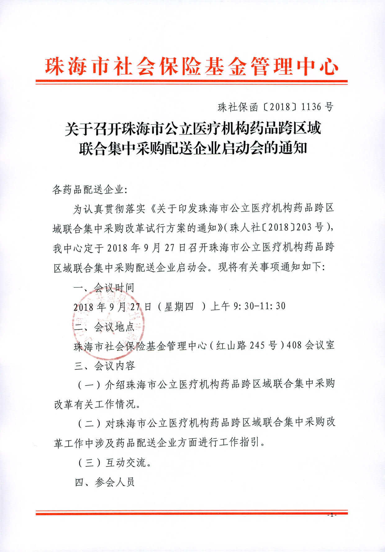 【珠海】广东省关于召开珠海市公立医疗机构药品跨区域联合集中采购配送企业启动会的通知