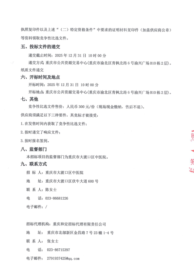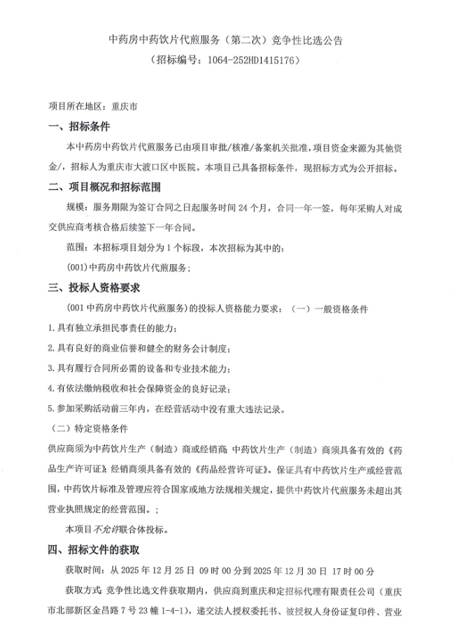 【重庆市大渡口区中医院】重庆市大渡口区中医院中药房中药饮片代煎服务(第二次)竞争性比选公告