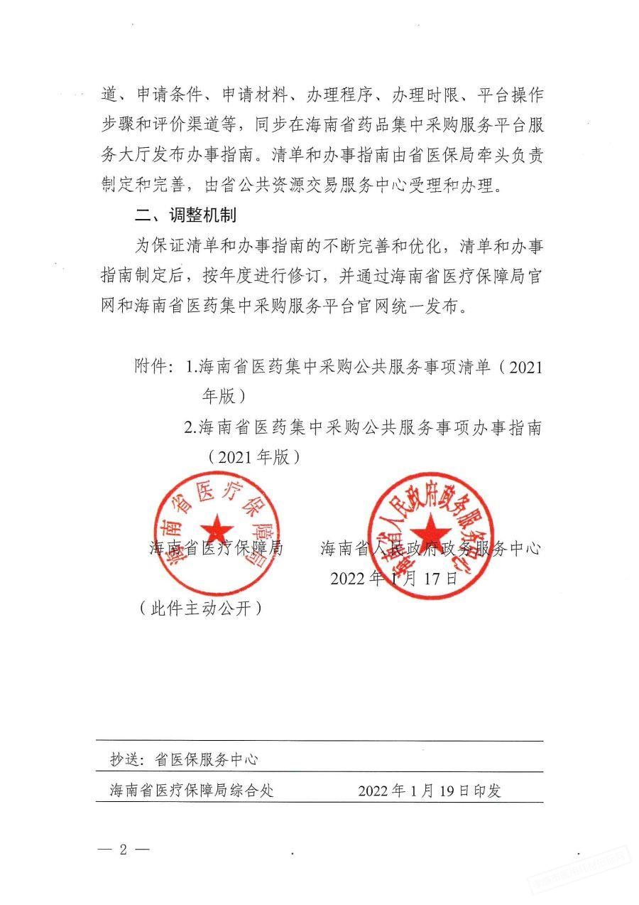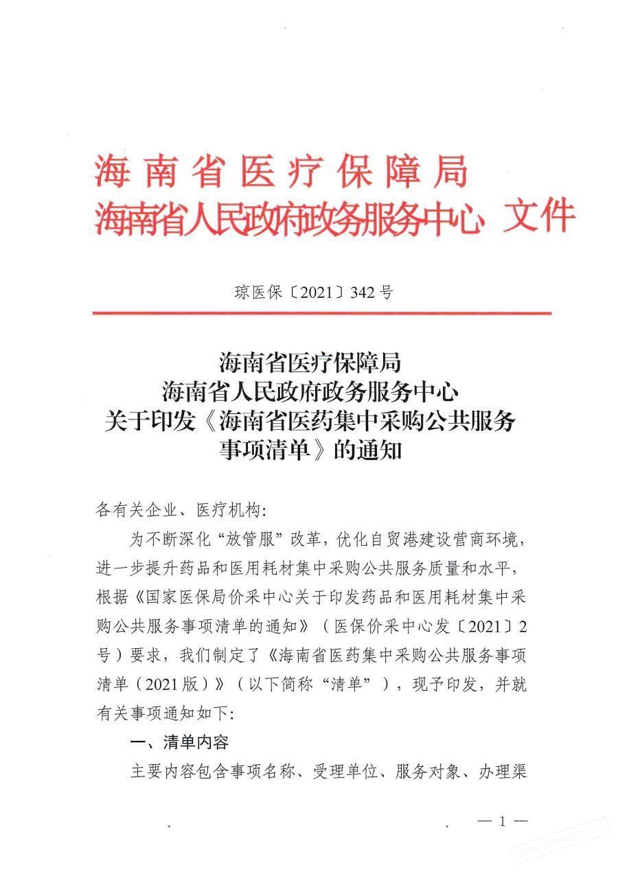 【海南】关于印发《海南省医药集中采购公共服务事项清单》的通知