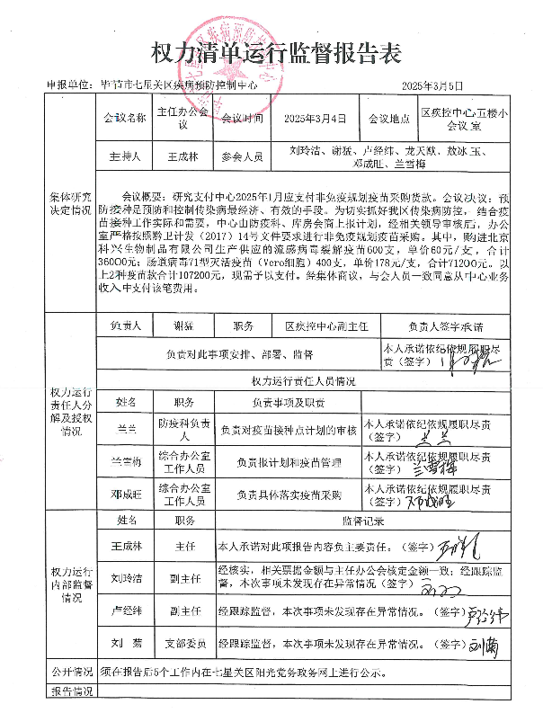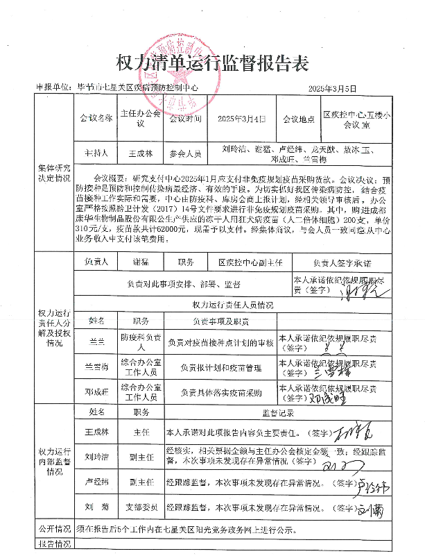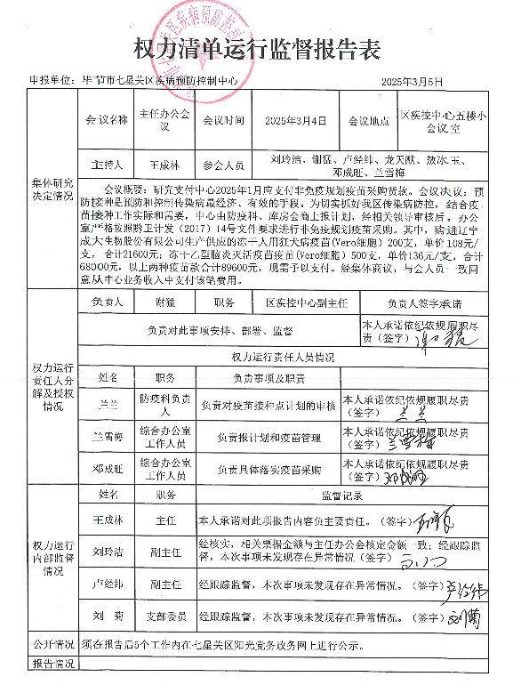 【毕节市七星关区疾控中心】贵州省毕节市七星关区疾控中心2025年1月应支付非免疫规划疫苗采购