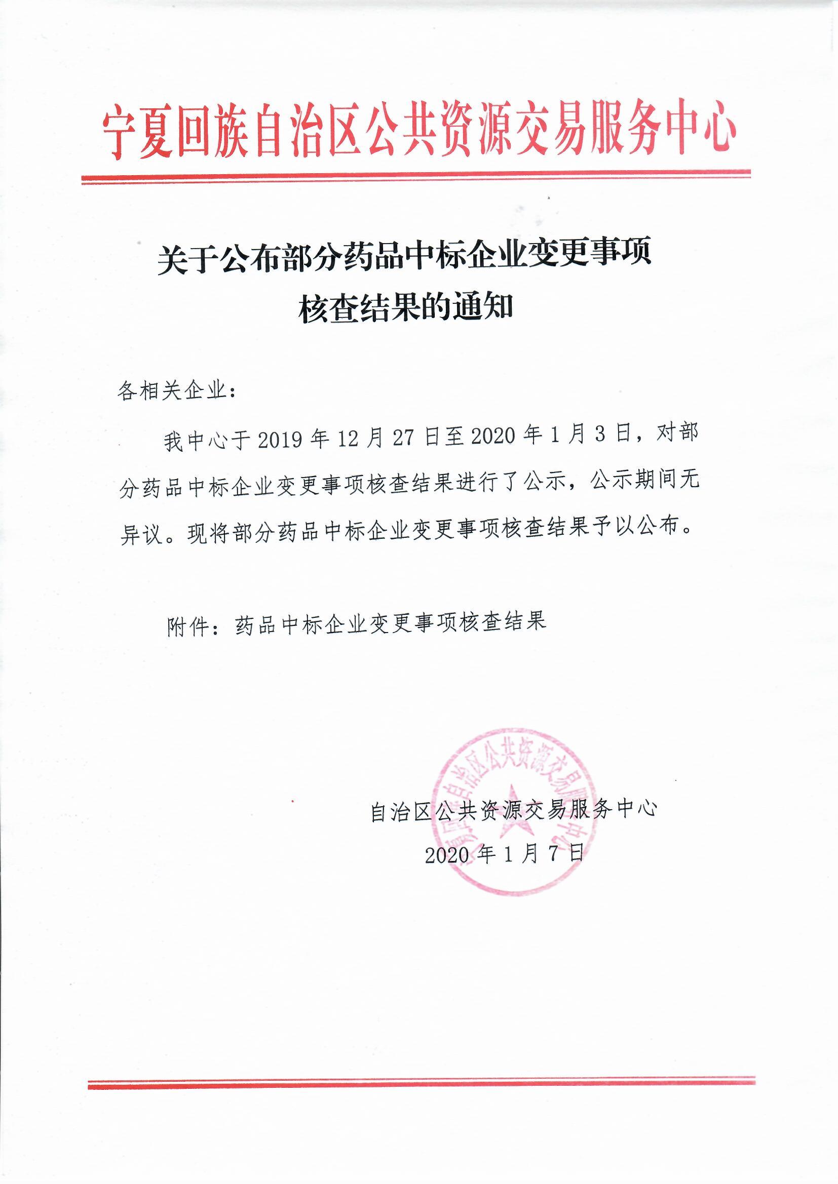 【宁夏回族自治区】宁夏回族自治区关于公布部分药品中标企业变更事项核查结果的通知